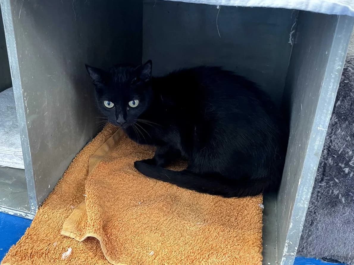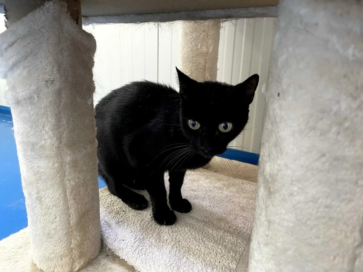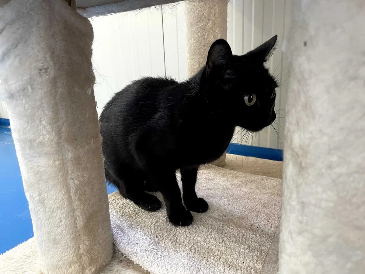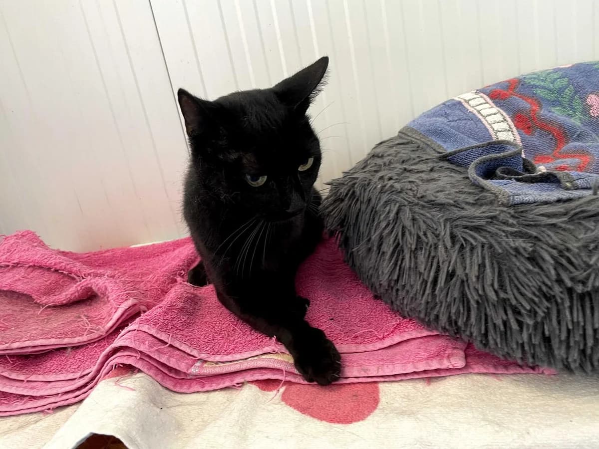 Marina is a beautiful one-year-old black female cat rescued in San Pedro Alcántara, Spain. She tested positive for feline leukemia (FeLV) but deserves a loving home. Currently shy and prefers her little house, she's gradually gaining confidence and taking small steps toward interaction. With patience and love, she will open up and enjoy life. FeLV positive cats need safe, loving homes and can live happily with other FeLV positive cats. Despite potentially shorter life expectancy, they live with the same enthusiasm and desire for affection as any cat.