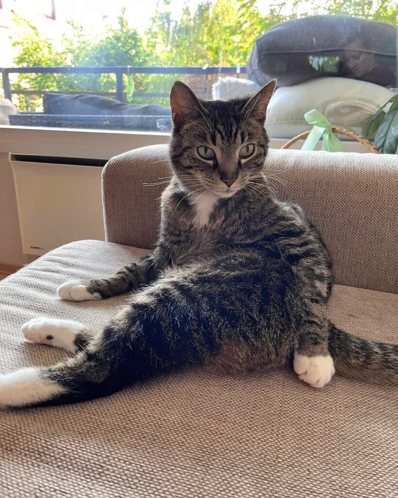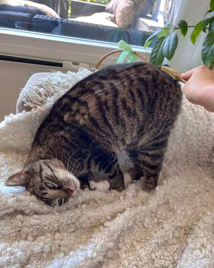 Maxi is a curious, talkative and cuddly cat looking for a quiet home without children or with older children. He needs access to good and safe outdoor opportunities. His foster family says he's a beautiful, trusting and kind cat. He always greets them with a meow when they come home from work and loves cuddles! He spends much time on his cozy blanket or in warm spots. He's curious and follows you around, sitting on your lap or beside you on the sofa. He's interested in human food and sometimes tries to snatch a bite. He's very secure, social and loves visitors. He tolerates being lifted and carried. He scratches furniture a bit when bored. Transport carrier is okay with treats as incentive, though he dislikes car rides.