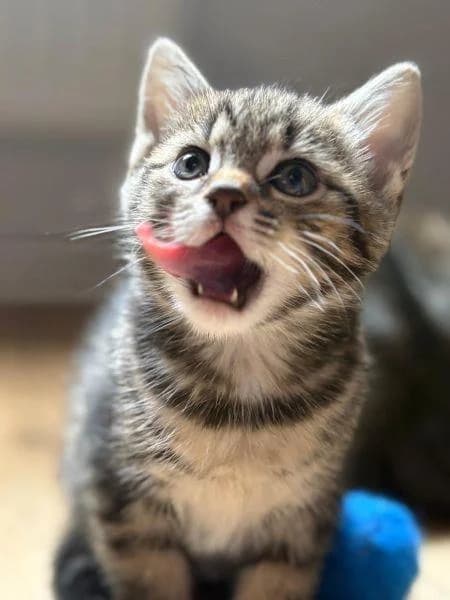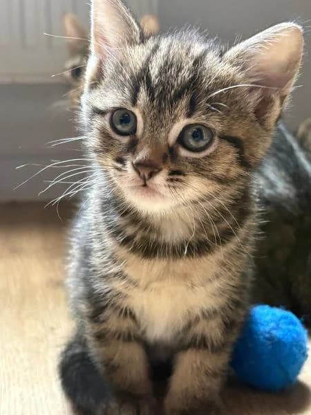 May and her siblings are typical kittens—little bundles of joy who are adorable, friendly, and playful. They can’t wait to find a family to love them forever. They were born a wonderful foster home and raised by their very sweet and affectionate mother, giving them the best possible start in life and helping them grow into confident, loving companions.Full of energy and curiosity, they will bring plenty of fun to any home, from chasing toys to exploring new corners—but they are also total cuddle bugs when it’s time to relax.Ideally, they would be adopted in pairs, as they thrive on companionship and will keep each other entertained and well-socialised. Alternatively, they could join a home with an existing cat-friendly feline companion.They are quite confident, so with proper introductions, they could live happily with a cat-friendly dog that has previously lived with cats.They would also be happy to live with sensible children, provided an adult ensures that playtime is gentle and appropriate, using their favourite toys.As they are still young, they would benefit from a home where someone is around to socialise and play with them, helping them settle in. Once old enough, they would enjoy access to a garden to explore the sights and smells of the outside world.If you’re looking for a sweet, playful addition to your home, or a pair to double the fun! Please register your interest today! they NAWT Bedfordshire Glebe Farm, Salford Road, Milton Keynes Bedfordshire MK17 8HZ Choose an item from our Amazon wish-list and it will come straight to us! Sponsor me and my friends to ensure I am safe and warm until I find a family to call my own.