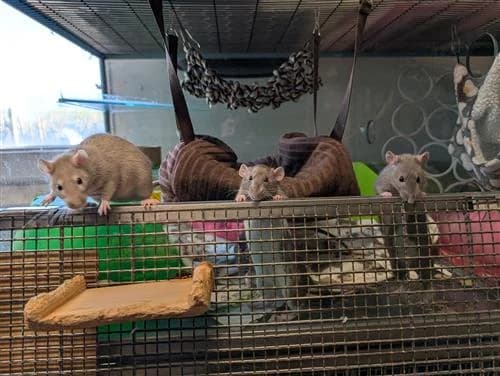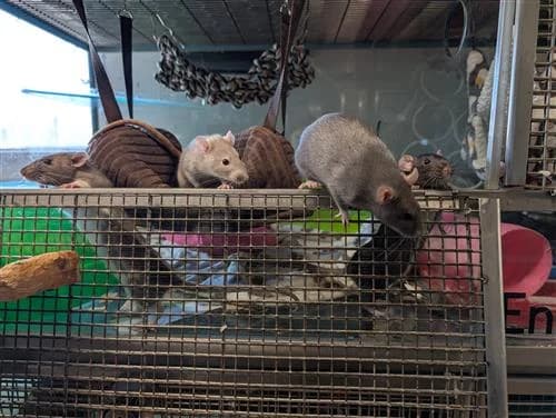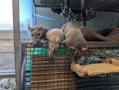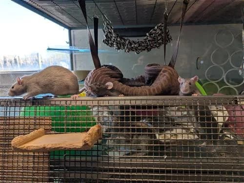 Background: Meet the Mexican Mischief - Burrito, Fajita, Quesadilla, Enchilada, a group of female rats. The girls came to Raystede as their previous owner no longer had enough time to dedicate to their care. They all absolutely love their food and are busy girls who love coming to see what you are up. They can often be found cosied up together in a lovely rat snuggle puddle. Ideal Home: The girls are fairly confident and tolerate handling. However, they can still be fast and wriggly so are looking for a home with an experienced rat owner to provide them with lots of fun enrichment to keep them entertained. Burrito (black) is the shyest of the group and will hang back a little bit and observe. She will need patient adopter to give her the time she needs for her confidence to grow. Children: They would be best suited to a home with experience in rat ownership. Could potentially live in a home with older children who are confident and experienced with interacting with rats. Other animals: They must be kept separate to any other types of animals in the home. They could potentially join an existing mischief, personality and enclosure size permitting. Additional needs: An adopter with experience with rat ownership and creating a very fun an enrichment home! If you are interested in adopting the fun and gorgeous Mexican Mischief, please complete an online application form.