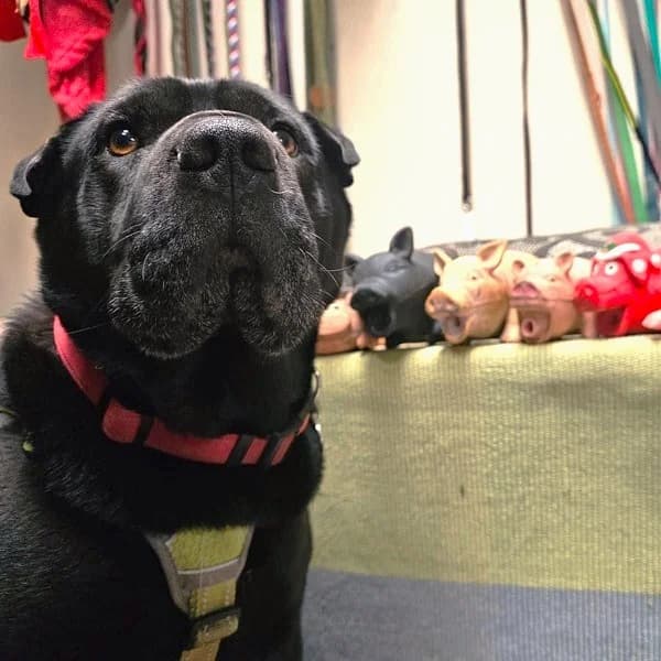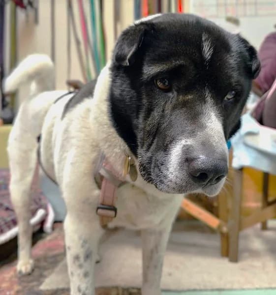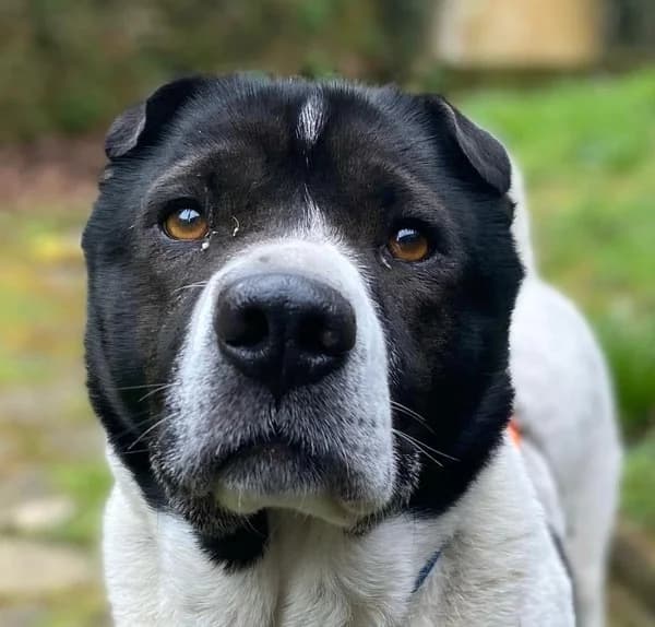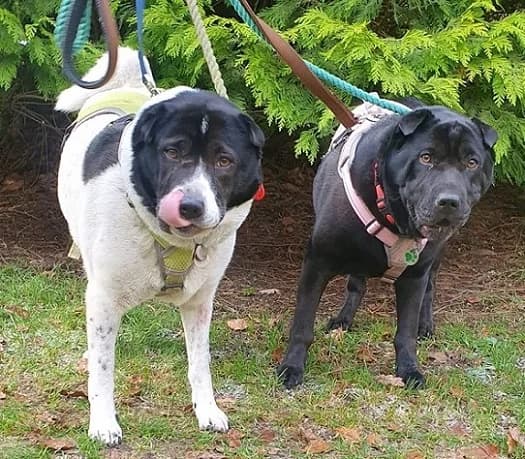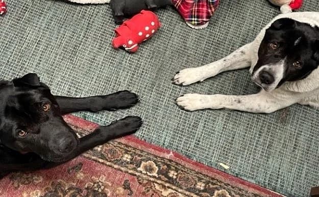 Please help Millie & Tess by sharing this page! Adorable duo Millie & Tess are Shar Pei X Collie sisters looking for a cat-free forever home or long term foster home in the south of England. They're in the care of Helping Hounds at their kennels in Grayshott, Hampshire. They get overlooked because they're a pair and on the large side but they are gentle, biddable, soppy ladies who will enhance their new home with loveliness! Millie loves her cuddles and will pop herself on a chair ready for tickles. Tess will come for strokes but then takes herself off and lies quietly nearby. Millie really loves her grunting pig toys… …which will just HAVE to go with her when the pair find their new home. Tess is the more social of the two when it comes to other dogs while Millie is getting calmer the more she sees other dogs and can wait while other dogs walk past. They both thoroughly enjoy their on lead walks around the rescue and their off-lead romps in a secure field. Both ladies are clean and well behaved in the home. They can be left for a couple of hours and will just settle down and wait for you to return… …with treats and fuss! Millie & Tess are spayed and vaccinated. Naturally, they want a nice garden to potter about in. They both enjoy getting cuddles from volunteers at the rescue but they could be forgiven for being a bit glum because no one has offered them a home yet. A long term foster placement or permanent home with soft furnishings and people to call their own would cheer them right up! If you want to enquire about fostering or adopting this cute pair of cuddle monsters, please complete the relevant application form on the Helping Hounds website here . Please say you saw Millie & Tess on the Oldies Club website. This replaces Millie & Tess' original page dated 27 January 2024.