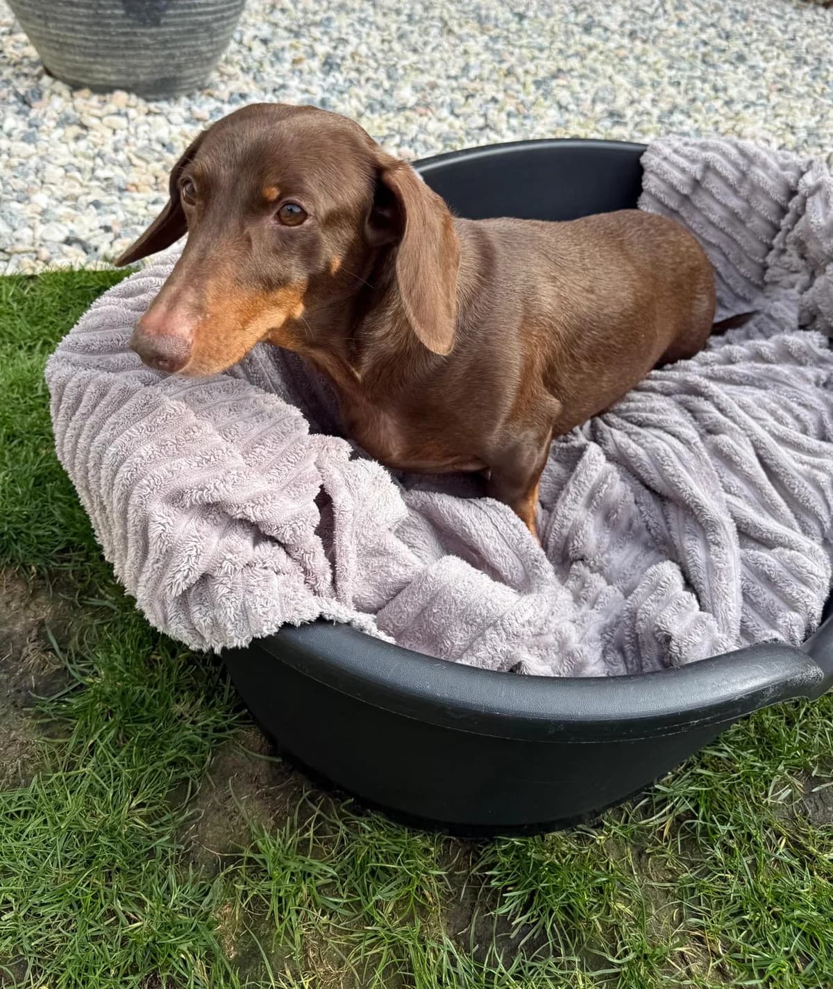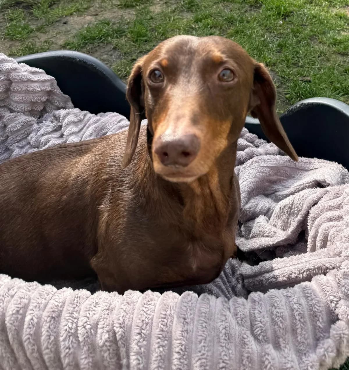 Milo – Norfolk 8 years 2 months Male, Standard Dachshund Chocolate and Tan Smooth Coat Neutered Adoption fee £250. Milo is the definition of a fighter. After a whirlwind few months battling IVDD and undergoing spinal surgery, this sweet boy is officially on the road to recovery. He is already hitting huge milestones, from regaining control of his bladder to finding his feet and trying to stand on his own. He is looking for a dedicated teammate who will cheer him on through his daily physio programme and help him reach his full potential, whatever that may look like. For Milo, the world can be a little overwhelming at times. He can be a bit of a watchdog who likes to alert you to outside noises, so a quiet sanctuary away from a busy road is a must for his peace of mind and your ears. Because he thrives in a predictable environment, Milo requires an adult-only home where he can focus on his rehabilitation in a calm atmosphere. When it comes to four-legged friends, Milo currently lives with other dogs and could potentially live with another calm dog, pending a successful meeting. It is important to note that he has shown some resource guarding behaviour towards other dogs in the past, so this will need to be managed carefully by his new adopters. His future family should be prepared to oversee his interactions and manage his environment, especially around food or toys, to ensure he feels secure and relaxed. Milo has been through so much and has handled it all with a wagging tail and a loving heart. He just needs one person to see his potential and commit to his journey. If you have a quiet home and a lot of love to give, Milo might just be the missing piece to your puzzle. Requirements in a home: Able to commit to any on-going rehabilitation Milo needs Could live with another calm, well-mannered dog pending a successful meeting. Cannot live with children. Can live with cats If you think you’re the safe space Milo needs, please email