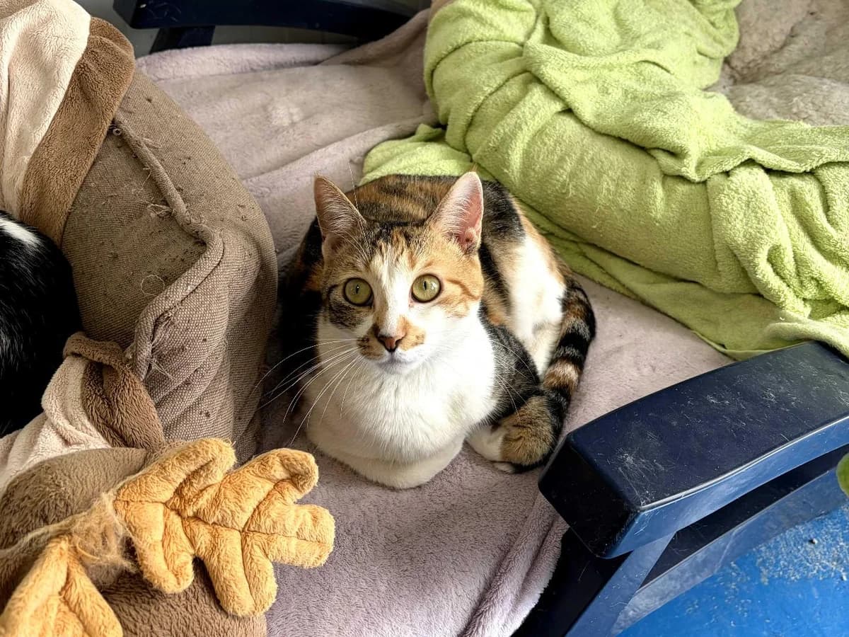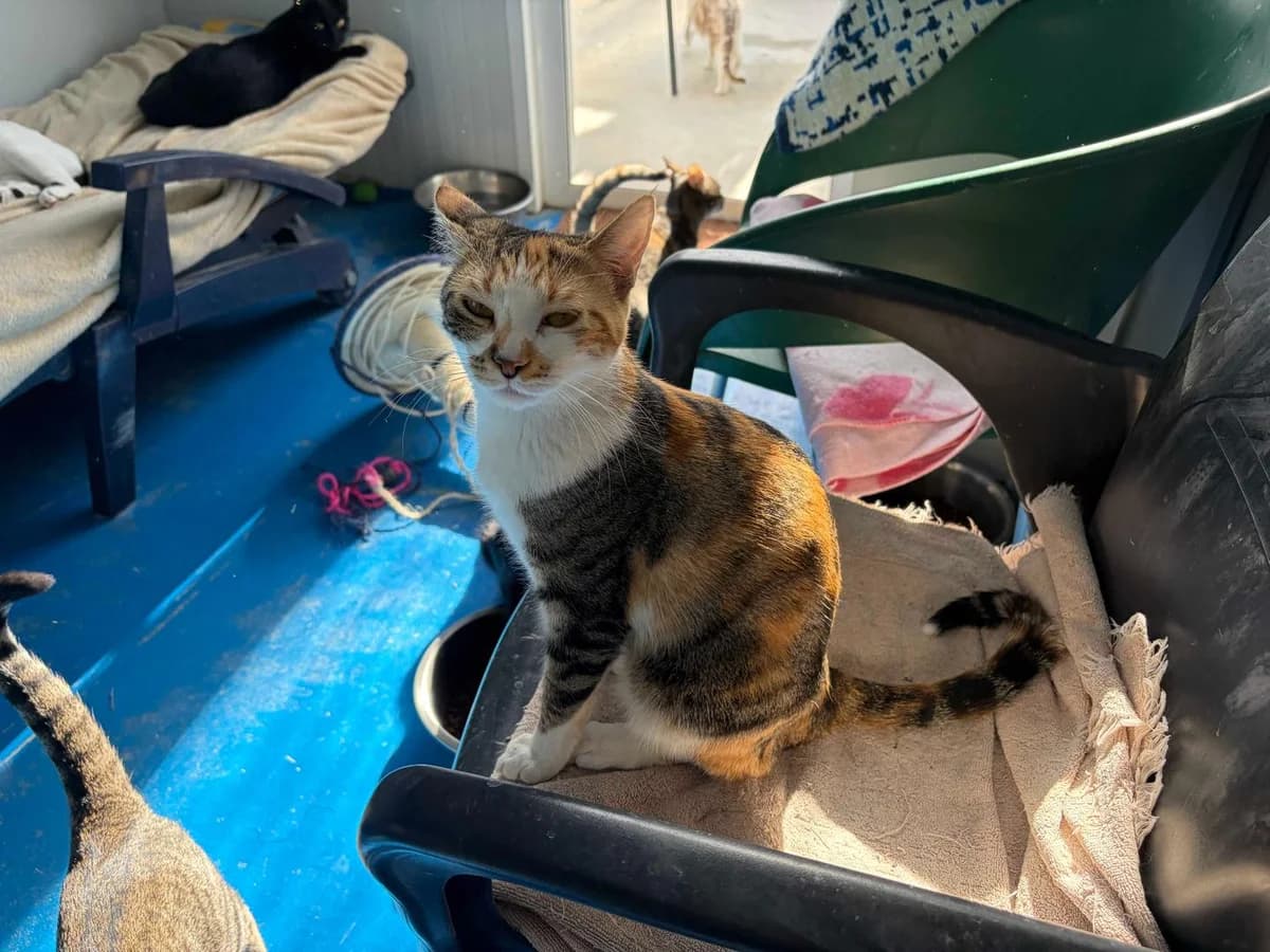 Moxie is a beautiful calico kitten rescued from the Alameda area of Marbella when she was just two months old. She arrived with a lot of personality: reserved, grumpy, and with a lot of “personal space” that no one could invade, neither cats nor humans. She wanted to get closer, but she didn't know how, and sometimes she expressed this with hisses. With patience and love, Moxie has changed. She now lives in a room with other kittens, and although it's not her ideal situation because she likes to have her own space, she no longer fights. Little by little, she learned that petting is pleasant, and she even seeks it out... although sometimes she ends up with a gentle nip, as if to say, “I'm learning, give me time.” Moxie is a special kitten. She needs a family with experience with cats, no children, and patience and understanding so she can finally open her heart. If you think you can give her that chance, adopt Moxie. She will be waiting for you to learn together the true meaning of home.