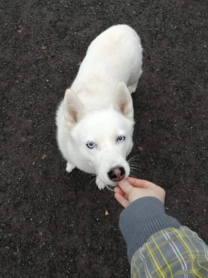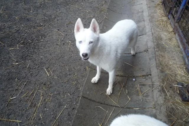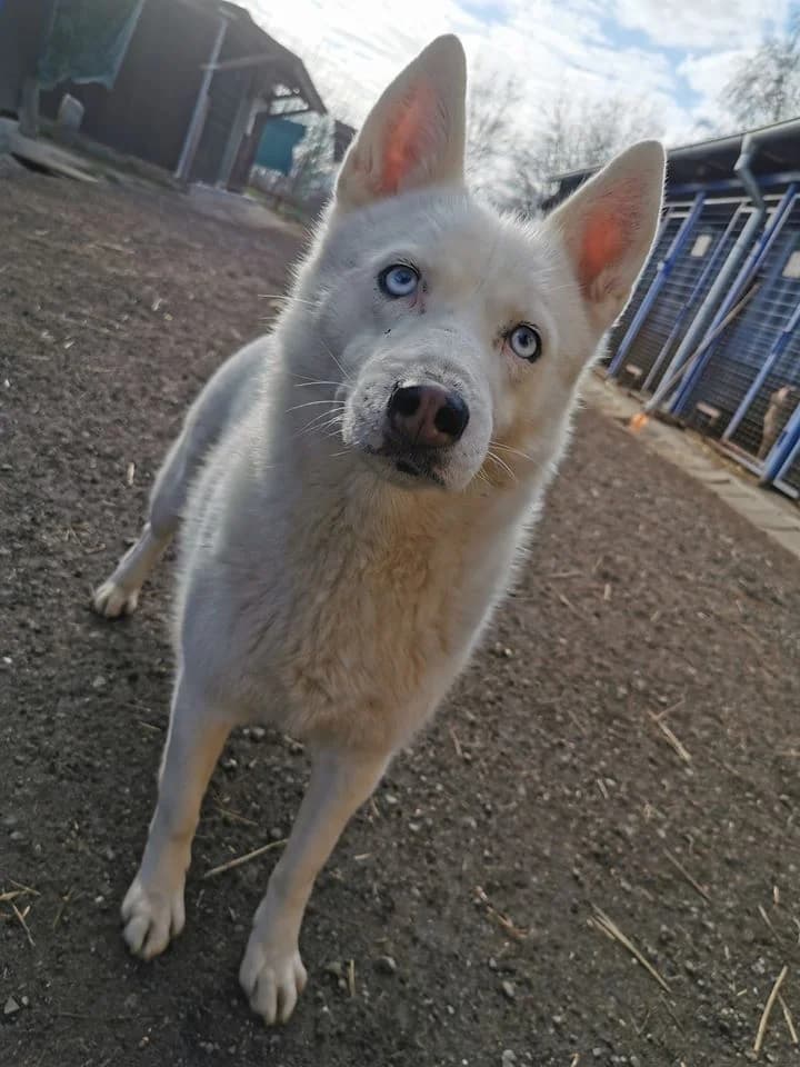 In the shelter since 24 November 2018, passed to the shelter by the owner - it was not suitable for professional musher breeding. Eyes like bright sky, smile of the summer sun, sparkly beauty of the north.... that's the mouse look. BUT! The mouse was born and grew up without contact with people and the common world. In combination with its nature and breeding capacity, it is as it is. This snow-white beauty came to us as a very shy and antisocial one-year-old lady. We've come a long way, but in a new home it will start again from the beginning. It has not been abused, nor has it had bad experience with humans, so it is not about correcting or eliminating the consequences of mistreatment. It's like changing the nature of a person. Can't expect a new family to take her on a walk. He's not the cuddling type. They don't want direct physical contact with humans. It may take months to get used to the new family and cooperate. Otherwise, it's a funny, funny dog girl who makes up bad things. She's fine in the dog pack. She's very good with dogs and female dog. She's playful, and she's pretty temperamental when she plays. That's why in the new family he needs a balanced and playful dog fly partner. It is therefore not suitable for small dogs and puppies, dog seniors, molosses (if such a dog is next -3., 4. in pack, never mind). Not suitable for cats, poultry and rodents. Totally inappropriate for an apartment. A well fenced plot and a pen (limited space) is necessary. A suitable home for Mouse is at the family house on the edge of the village or town with nature behind the fence. Who are you from the apartment, the center of the village, do not write - please. If you're interested in Mouse, write something about yourself and what home you're offering on: With an adoption fee of 2,500, - (vaccinated with vaccine, dered, flea Bravecto, neutered and chipped)