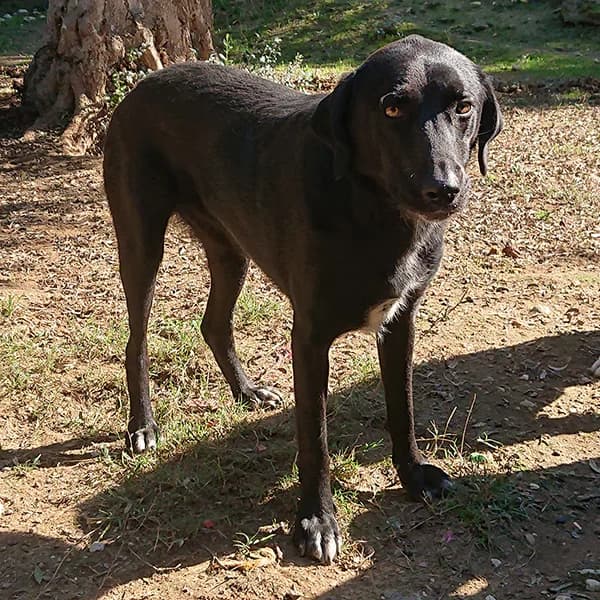 Nomi lebt auf einer Pflegestelle in Patras / Griechenland.VIDEOS VORHANDEN !!! Hündin/kastriertgeb. ca.Oktober 2022Grösse : ca. 53 cm Update 31.10.2024: Wo sind Menschen, die dieser schwarzen Schönheit mit den hübschen Bernsteinaugen endlich das langersehnte Zuhause schenken ? Update 31.10.2024:Unsere Kolleginnen berichten über Nomi :Nomi hat sich zu einer erwachsenen Hündin gemausert. Sie lebt immer noch in der örtlichen Pflegestelle mit weiteren Hunden und Katzen friedlich zusammen. Im letzten Jahr war Nomi noch recht schüchtern uns gegenüber, dieses mal war davon nichts zu spüren. Sie kam freundlich auf uns zu, suchte den Kontakt, war aber keinesfalls aufdringlich. Grundsätzlich machte sie einen sehr entspannten Eindruck. Sie ist eine wunderschöne Hündin mit sehr ausdruckstarken Augen und glänzendem Fell. Für Nomi wäre ein Zuhause bei Menschen toll, die gerne viel mit ihrem Hund unternehmen wollen. Sie benötigt noch Erziehung, bei den richtigen Menschen würde sie bestimmt eine tolle Begleiterin abgeben. Update 13.10.23Unsere Kolleginnen berichten über Nomi :Nomi lebt zusammen mit weiteren Hunden und Katzen in einer örtlichen Pflegestelle. Sie ist dort seit ihrem Welpenalter und fühlt sich da sichtlich wohl. Mit uns, für sie fremden Personen, war sie etwas vorsichtig am Anfang, aber das legte sich ganz schnell. Nomi ist eine junge, schwarze Schönheit! WAS BISHER GESCHAH:Nomi wurde von einem jungen Tierschützer gerettet, als ein Mann sie auf der Straße zu verkaufen versuchte. Die Kleine hatte einen Strick um ihren Hals gebunden und sah ziemlich verschüchtert aus, so dass der Tierschützer den Welpen für 10€ kaufte. Jetzt ist Nomi in Sicherheit und auf einer örtlichen Pflegestelle untergebracht. Auch den obligatorischen Tierarztbesuch und die erste Impfung hat sie schon hinter sich und kann sich schon mal auf die Suche nach einem richtigen Zuhause machen. Nomi ist altersentsprechend verspielt und fröhlich. Natürlich muss sie – wie alle Welpen - das 1×1 der Hundeerziehung erst noch lernen und sucht Menschen, die erstmal nichts von ihr erwarten und ihr behutsam zeigen, wie ein normales Hundeleben funktioniert. Nomi ist bereits geimpft, gechipt und entwurmt, ihr Impfschutz ist ab Mitte März komplett und ab dann ist sie reisefertig. Da ihre Rute verkürzt ist, ist eine