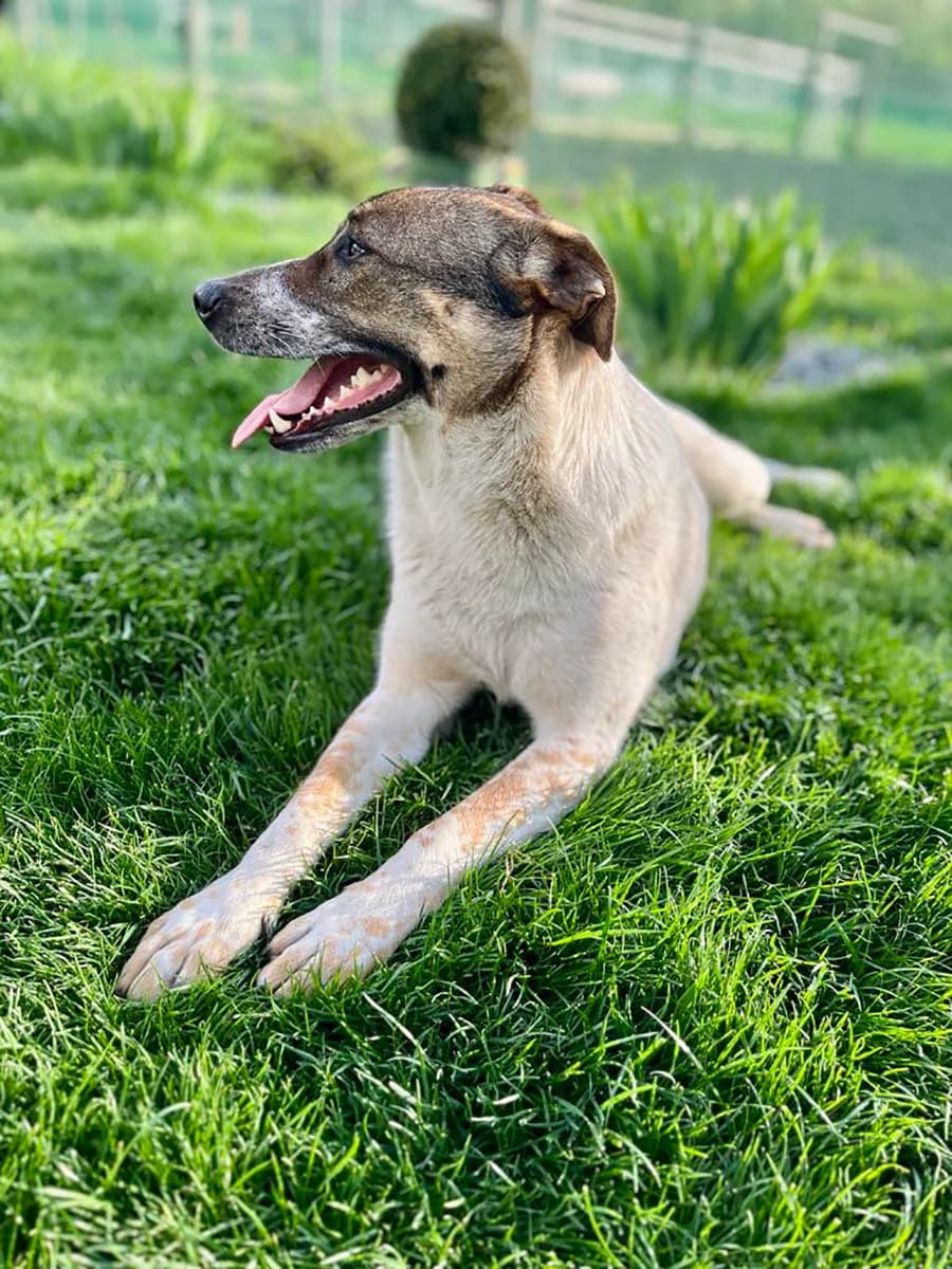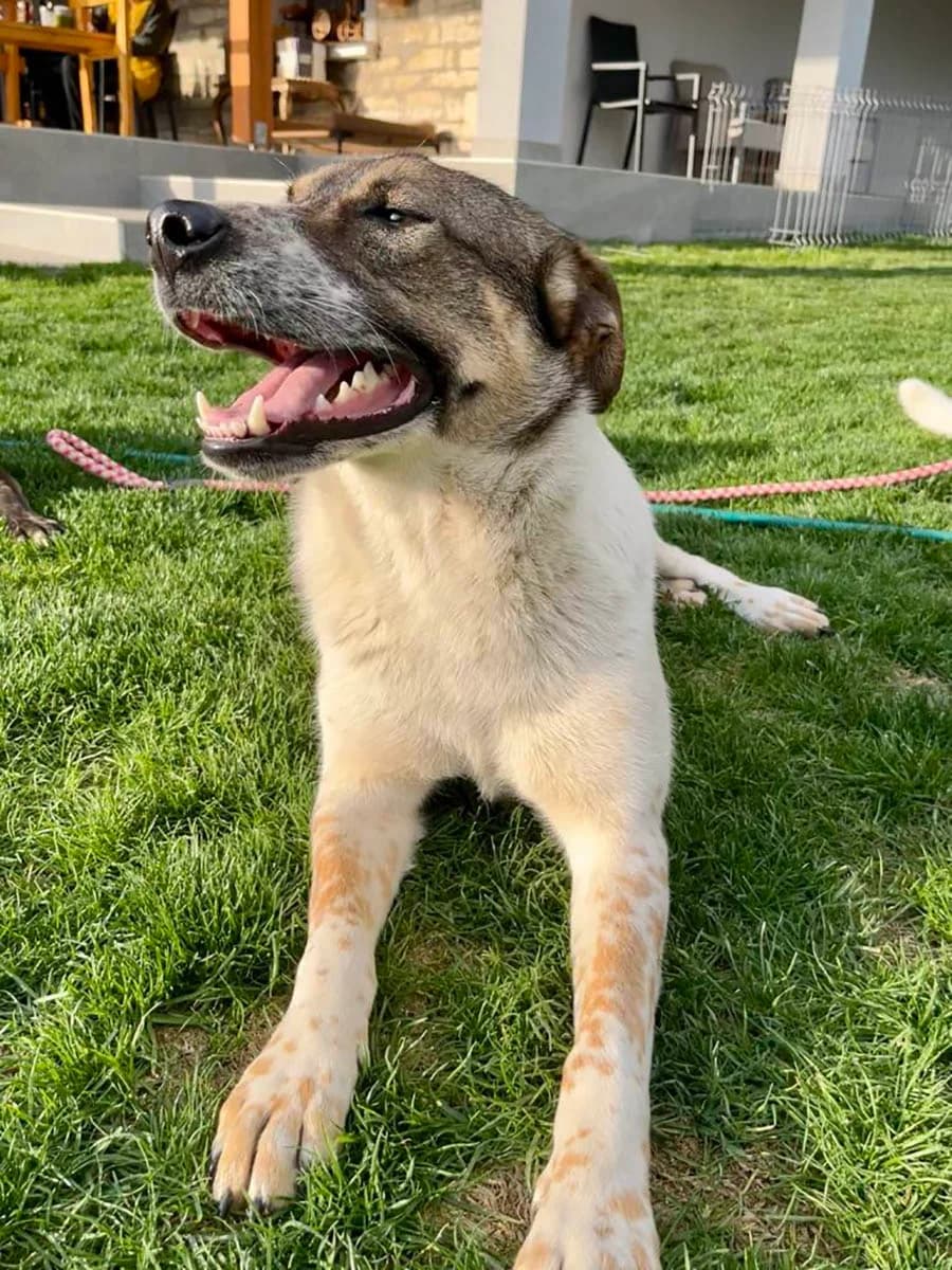 Rasse: Mischling Geschlecht: weiblich Alter: 1,5 Jahre (geb. etwa November 2023) Schulterhöhe: 57 cm, 19 kg Kastriert: ja Katzenverträglich: kann getestet werden An einem kalten Wintertag wurden drei ausgesetzte Welpen am Straßenrand zwischen zwei Dörfern gefunden – darunter auch Olive. Eine Familie, die gerade mit einem anderen Hund zum Tierarzt fuhr, entdeckte sie rechtzeitig und brachte sie in Sicherheit. In der Pflegestelle angekommen, durften sie zusammen mit anderen Hunden aufwachsen und fanden dort auch eine fast gleichaltrige Spielgefährtin.Olive hat sich zu einer sanften, freundlichen und sehr menschenbezogenen Hündin entwickelt. Im Vergleich zu ihren ein wenig lebhafteren Schwestern ist Olive etwas ruhiger und liebt es besonders, in der Nähe von Menschen zu sein. Sie genießt Streicheleinheiten sehr und sucht oft die Nähe, um sich anschmiegen zu können – sei es auf einer Decke im Schatten oder in einem gemütlichen Hundebett.Fremden gegenüber zeigt sich Olive freundlich, aber nicht überdreht. Sie nimmt sich manchmal einen Moment Zeit, um anzukommen, zeigt dann aber ihr liebevolles und zutrauliches Wesen. Mit anderen Hunden versteht sich Olive gut. Sie ist sozial, verspielt, aber auch rücksichtsvoll – besonders gegenüber älteren oder zurückhaltenderen Hunden. Toben im Garten gehört genauso zu ihrem Alltag wie gemeinsames Dösen mit ihren Schwestern. Olive teilt gern ihre Spielsachen, spielt aber auch mal allein oder zieht sich bewusst zurück, wenn ihr danach ist. Katzen gegenüber zeigt sie sich neugierig, aber vorsichtig. Ein direkter Kontakt hat bisher nicht stattgefunden, kann jedoch gerne getestet werden.Olive liebt es, draußen zu sein – egal ob sie herumtollt oder einfach das Geschehen beobachtet. Sie ist gerne mittendrin, ohne sich in den Vordergrund zu drängen. Obwohl sie das Leben im Haus nicht gewohnt ist, genießt sie es an kälteren Tagen, in einem beheizten Hundezimmer zu liegen, wo sie es sich in einem weichen Bettchen gemütlich macht. Spaziergänge an der Leine kennt sie bereits in Ansätzen. Sie zeigt dabei noch etwas Aufregung, lässt sich aber gut führen und wird mit ein wenig Geduld schnell sicherer. Da sie in einem Dorf aufgewachsen ist, kennt sie den lauten Verkehr und großen Menschenmengen einer Großstadt nicht. Das Autofahren ist noch nicht ihr Lieblingsding, aber kurze Fahrten zum Tierarzt hat sie gut gemeistert und beruhigt sich schnell.Olive wünscht sich eine liebevolle Familie, bei der sie ankommen darf und Zeit bekommt, die Welt in ihrem eigenen Tempo zu entdecken. Ein ruhiger, freundlicher Zweithund und ein Garten zum Schnüffeln und Dösen wären ein großes Plus – aber viel wichtiger ist für sie der Mensch, an den sie ihr Herz verschenken darf. Alle unsere Hunde sind natürlich geimpft, entwurmt und gechippt mit EU-Pass! Bitte haben Sie Verständnis, dass wir nur ernstgemeinte Anfragen mit