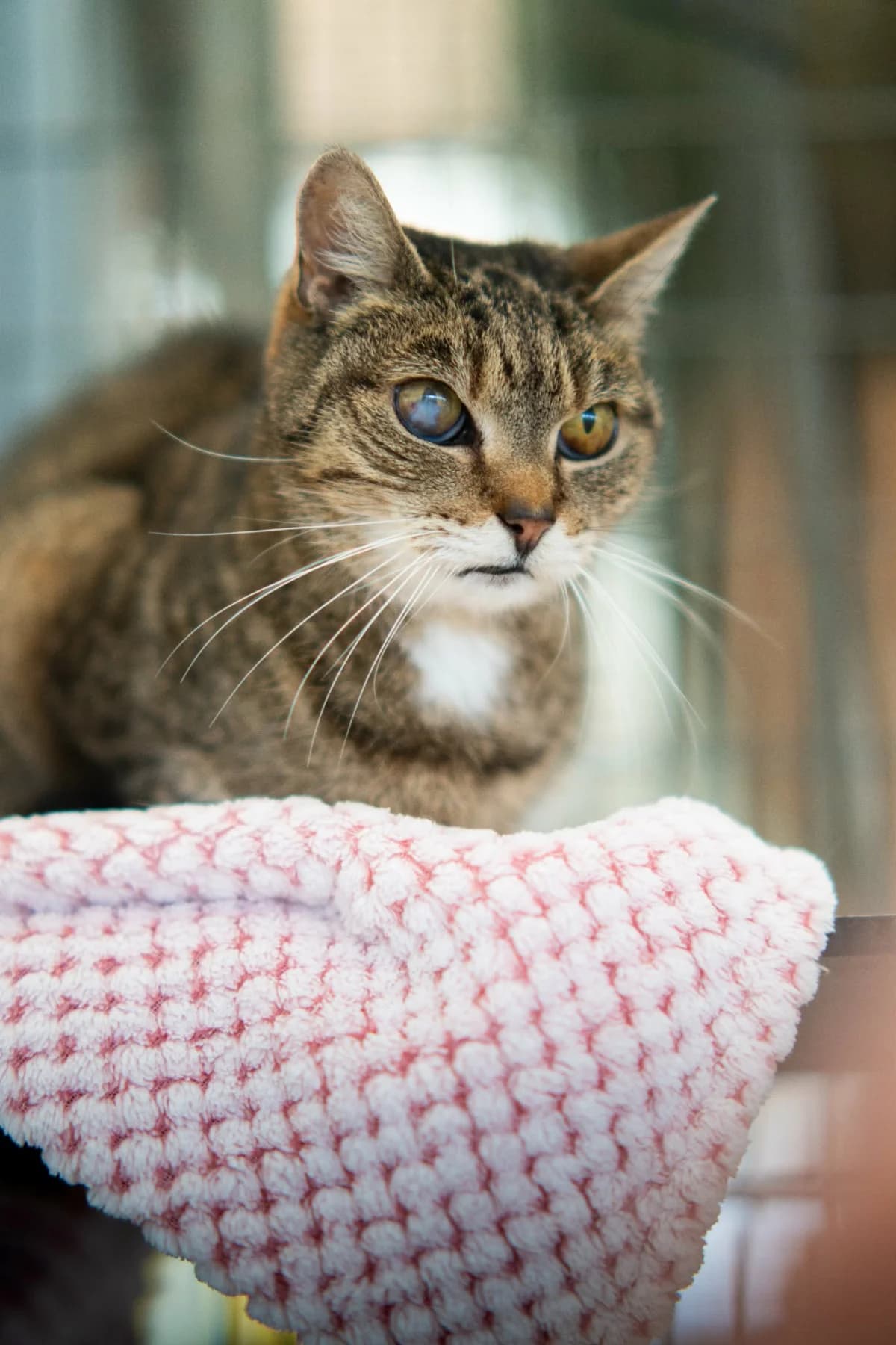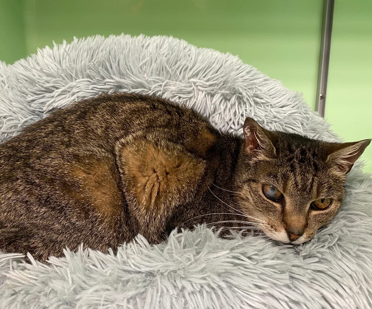 "Ich bin eine 10-jährige Katzendame, die sich ein gemütliches, liebevolles Zuhause wünscht. Lange Zeit habe ich auf der Straße gelebt. Eine nette Frau hat mich dort immer gefüttert – bis sie ins Altersheim ziehen musste. So kam ich ins Tierheim. Anfangs war alles für mich sehr ungewohnt, und ich brachte ein paar Baustellen mit : meine Zähne mussten gemacht werden (alles erledigt !), ich hatte Schnupfen und war so gestresst, dass ich fast nichts essen mochte, es gab Herzgeräusche, die sich zum Glück als unbedenklich herausgestellt haben, und ich habe eine alte Hornhautnarbe am Auge – die ist kosmetisch, bereitet mir aber keinerlei Probleme. Heute geht es mir wieder richtig gut. Ich fresse ordentlich, schnurre gern und genieße gemütliche Plätze. Jetzt bin ich bereit für mein eigenes Für-immer-Zuhause."