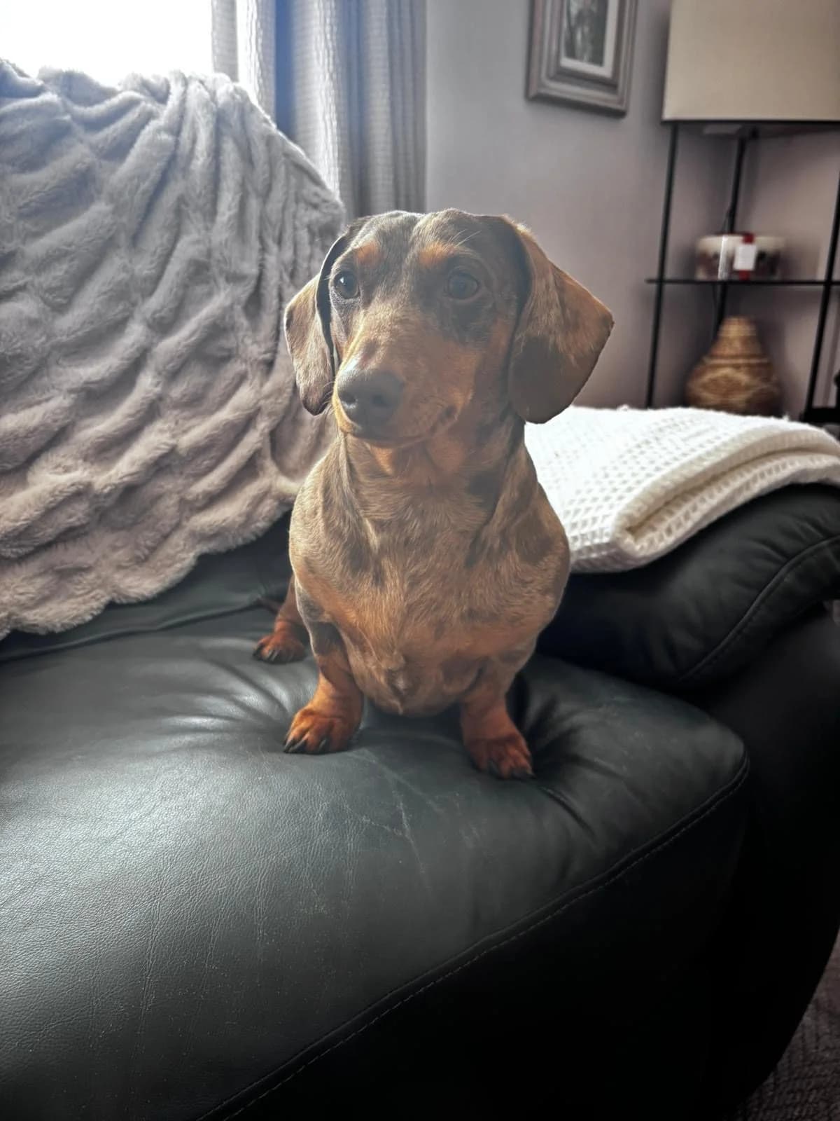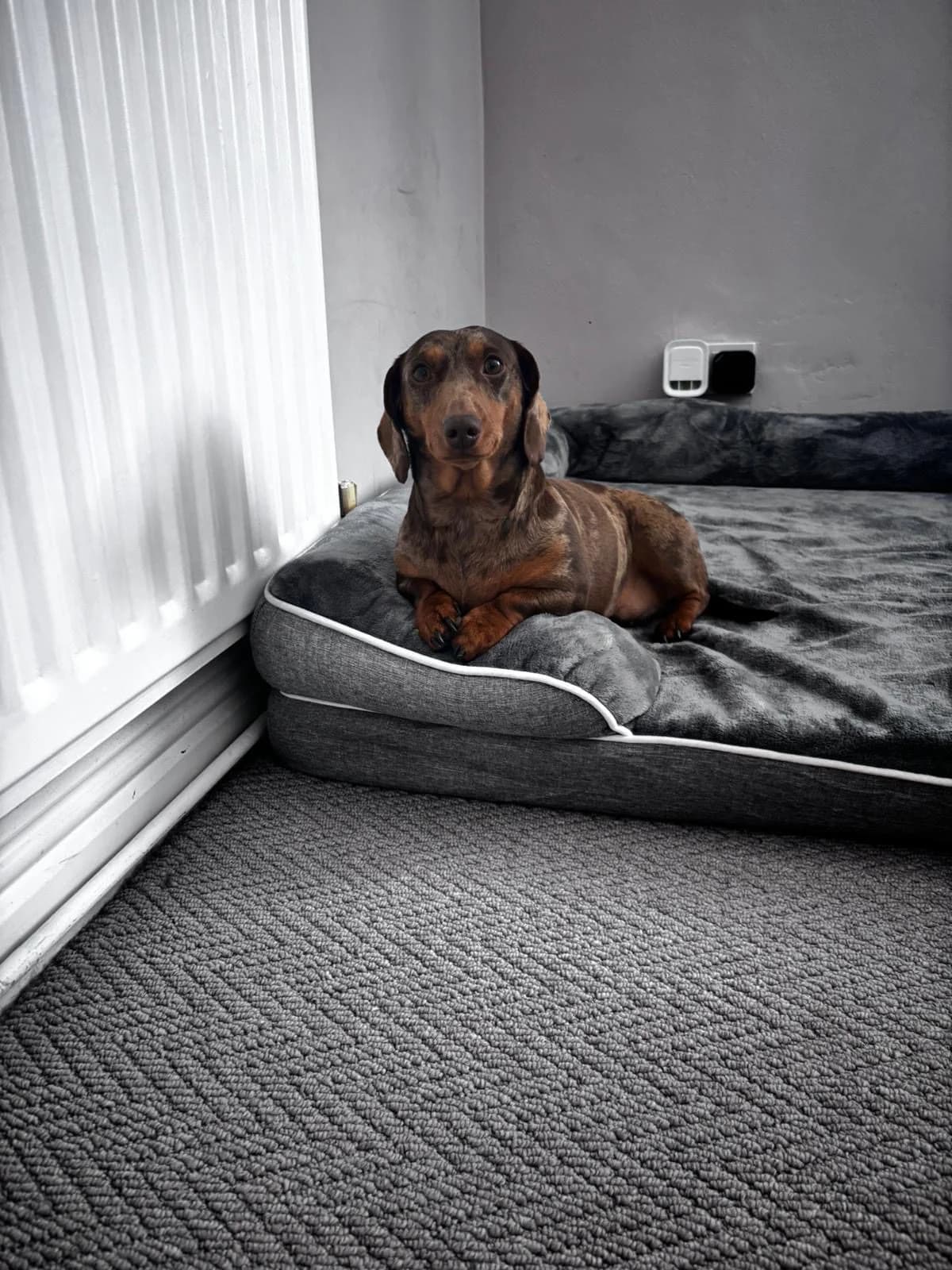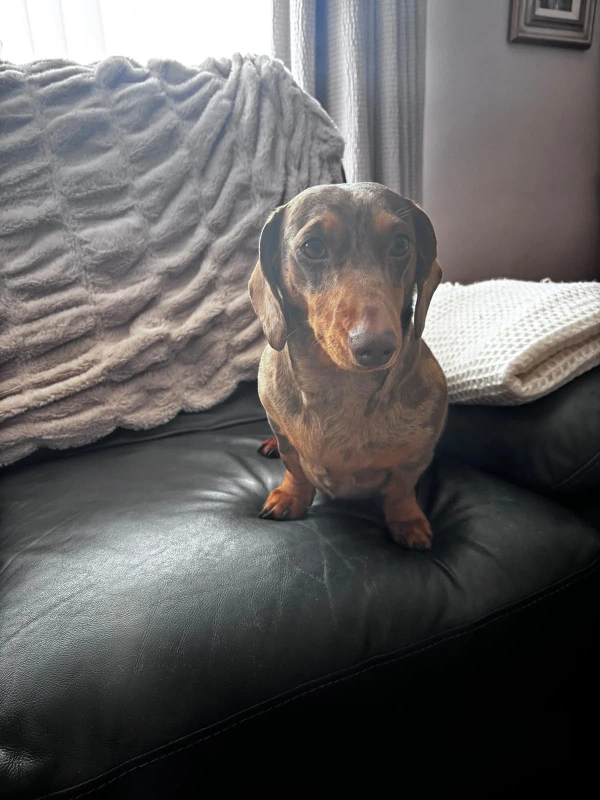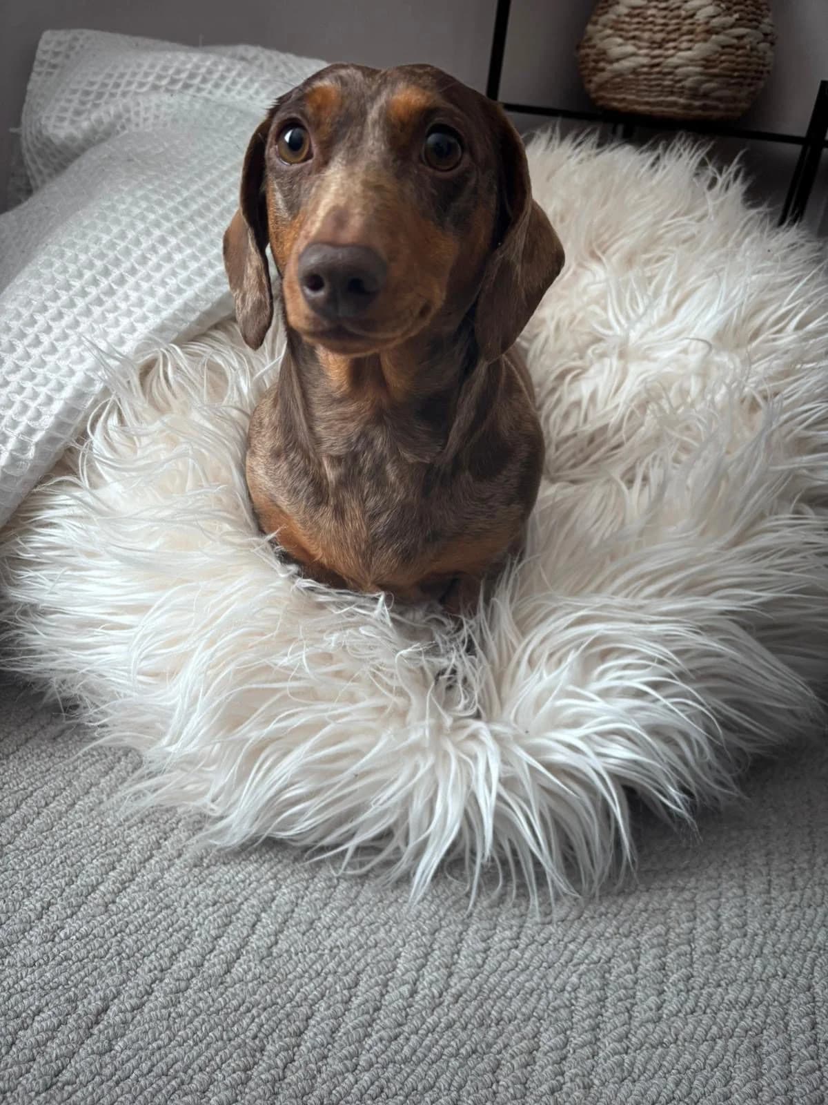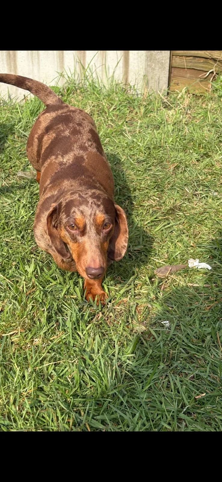 Lichfield 3 years old Female, mini, smooth, chocolate dapple Not-neutered Adoption fee £450 Peggy is a gorgeous girl looking for a new home where she can be the apple of someone’s eye and blossom into a relaxed and loving little pet. She is currently living with two other dogs and is finding it increasingly hard to share her space so her owner has made the heart-breaking decision to let her go so that she can thrive as someone’s loved one and only dog. Peggy is an affectionate and loving little dog once she gets to know you. She loves nothing better than snuggling up with her special humans on the sofa. Like many dachshunds, she has a big bark and can be vocal around strangers and unfamiliar visitors, but given time and space she will get to know anyone, especially if treats are involved! Like any dog, she needs to have her space respected and although she currently lives happily with young children, she nipped a stranger who tried to pick her up without warning. For this reason, we are looking for a child-free home. She is happy sleeping in her crate downstairs and can be left for periods of time once she is settled. Outside the home, Peggy feels uncertain and nervous and will bark at dogs she does not know. However, she is a young and food-oriented dog, so we feel that she can build her confidence given time and patience and learn to enjoy walks and the potential fun to be had during them – we will give behaviourist support if needed. Peggy is in excellent health. Overall, Peggy is a sweet and loving dog who will be a very rewarding pet for someone with the time to train her and who can offer a calm home and be consistent and kind with her. Requirements in a home for Peggy A home where someone is around most of the time No other dogs or cats No children To find out more about Peggy please email