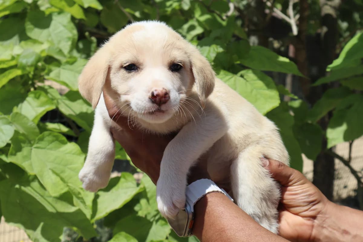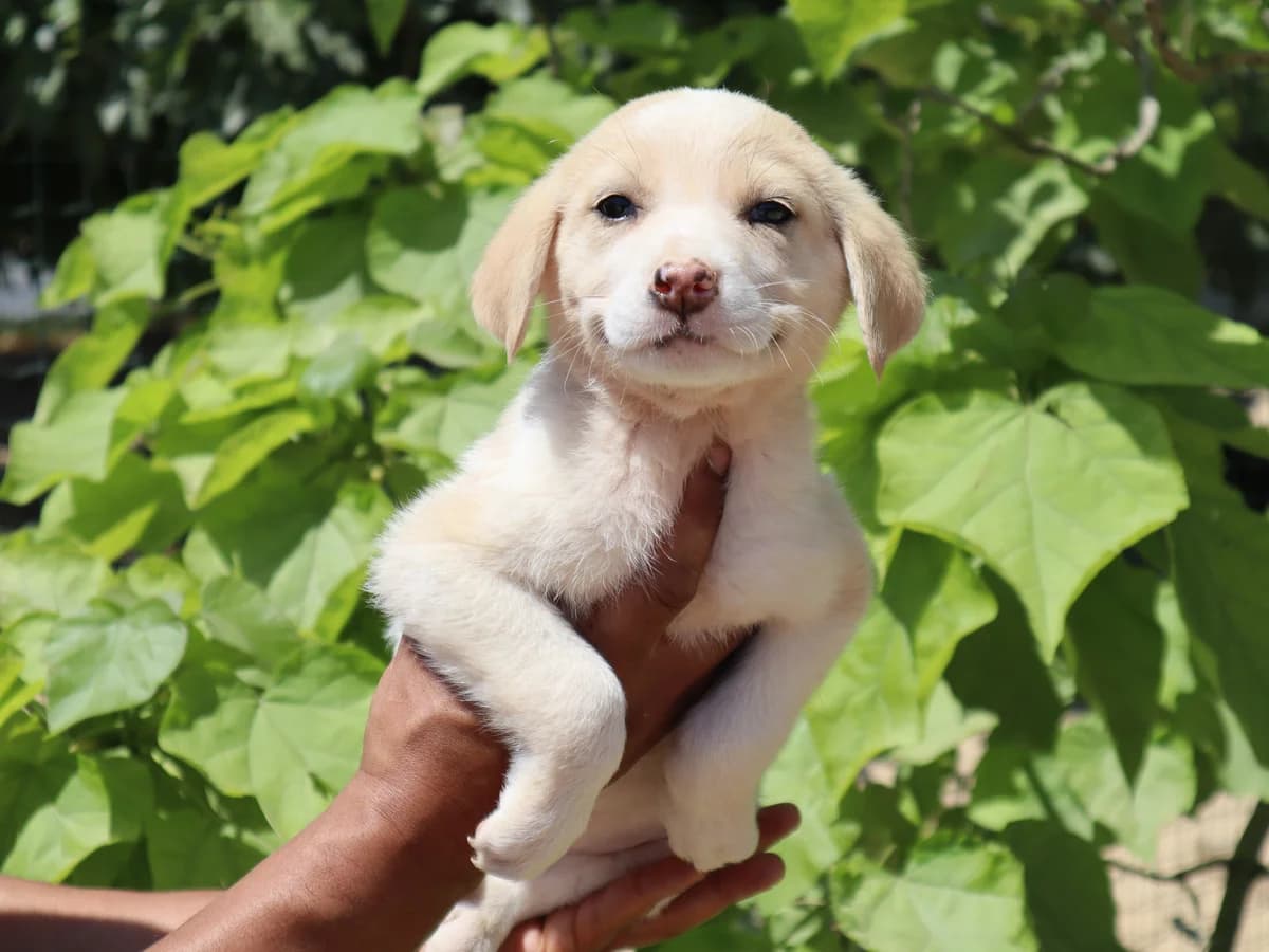 A Pina foi encontrada com os irmãos numa caixa, no caixote do lixo, perto do abrigo. Os cachorros são muito queridos, sociáveis e estão habituados a pessoas. De certeza que nasceram numa casa. Felizmente, foram encontrados a tempo e agora estão saudáveis e a desenvolver-se muito bem. A Pina será entregue vacinada, desparasitada e com microchip.