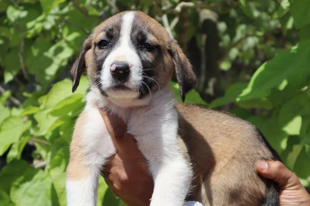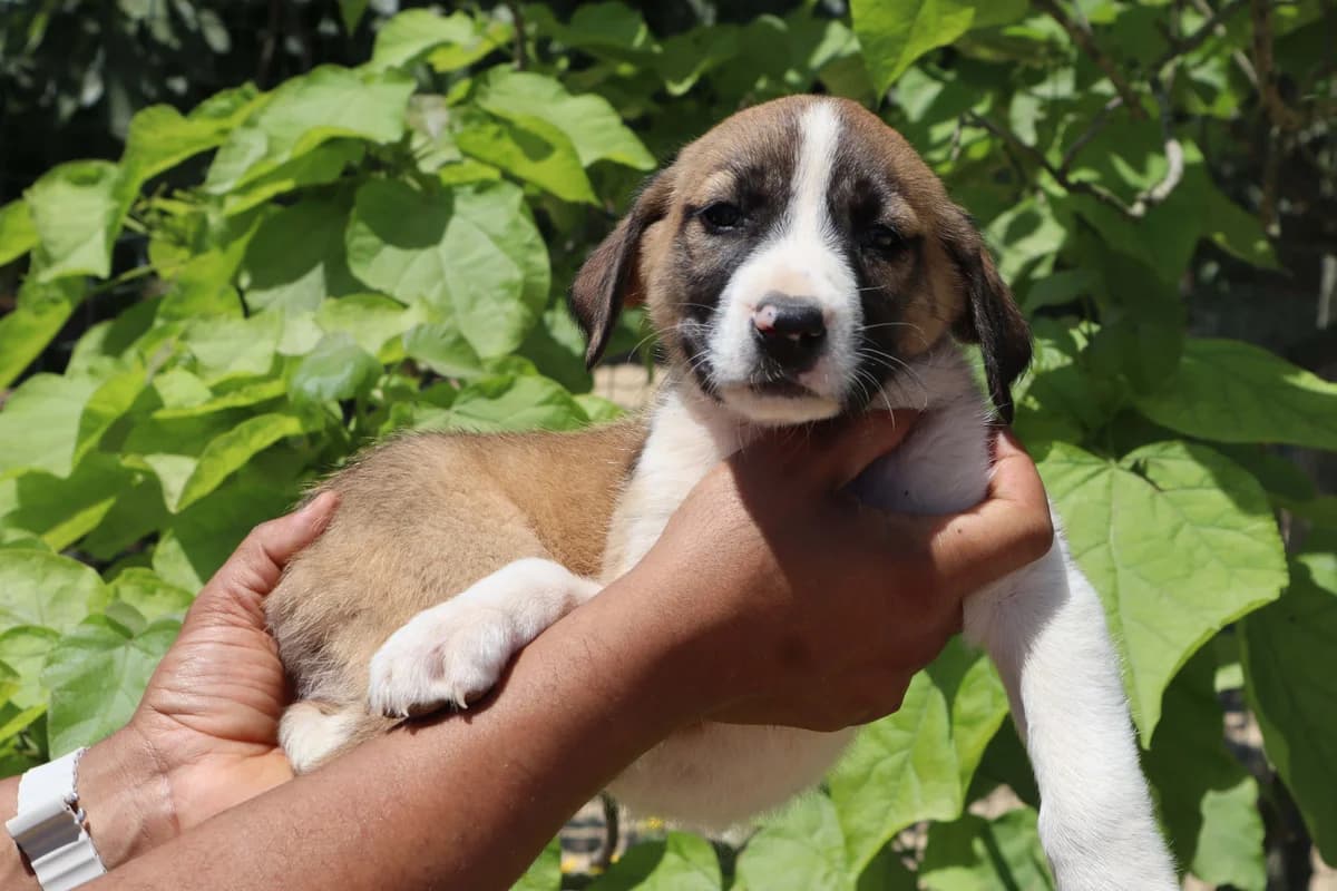 A Polly foi encontrada com os irmãos numa caixa, no caixote do lixo, perto do abrigo. Os cachorros são muito queridos, sociáveis e estão habituados a pessoas. De certeza que nasceram numa casa. Felizmente, foram encontrados a tempo e agora estão saudáveis e a desenvolver-se muito bem. A Polly será entregue vacinada, desparasitada e com microchip.
