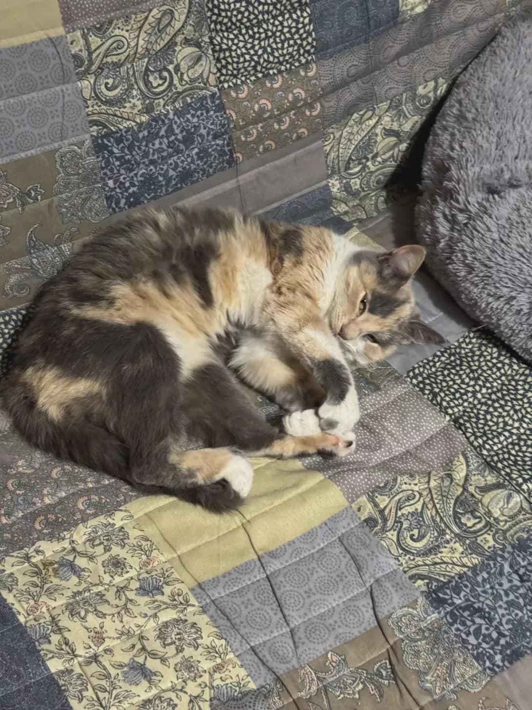 Кицюню викинули в місті. Вона сиділа в коробці з недопалками та грілась. Лагідна кішка. любить людину та увагу