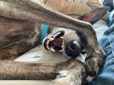 ‘OLD DOG OF THE WEEK’ FEATURES NEW PHOTOS AND A FRESH WRITE-UP FOR AN OVERLOOKED OLDIE THAT HAS BEEN ON OUR WEBSITE FOR A WHILE BUT IS STILL WAITING FOR A NEW HOME. Please help Rafi by sharing this page! Happy-go-lucky Rafi is a 9-year-old Galgo lady (that's an exotic Spanish breed of sighthound) currently in foster care in Rhondda, South Wales through Project Galgo . She's 61cm in height, weighs 22kg and is an absolute sweetheart! Rafi can live with sensible older children but she wants to be the only pet at home. She really loves her humans and can take any amount of fuss. She's a comical, sometimes cheeky girl who will keep you amused as well as feeling loved. Rafi was rescued from a pound in Spain where she'd been very stressed. She now takes life in her easy lope of a stride and has settled in to family life beautifully! She walks nicely on the lead. She used to bark at most other dogs but has calmed right down with feeling secure in foster care. Her old habit might reassert itself at first, on adoption, but should once again be forgotten once she feel at home. Rafi is a delightful dog to have around. She loves sofa cuddles and just relaxing in her comfy bed. She can be left, once she's got used to things, for up to 4 hours quite happily. She likes her kong toy especially but will make do with treats too. Her only real dislike is the hoover! Rafi is spayed, vaccinated and been vet checked. She wants a peaceful home with a garden and a kind person or people to make her feel loved. If you want to enqire about this special lady, please contact Project Galgo or as follows: Email: Please say you saw Rafi featured as Old Dog of the Week on the Oldies Club website. This replaces Rafi's original page dated 15 February 2026.