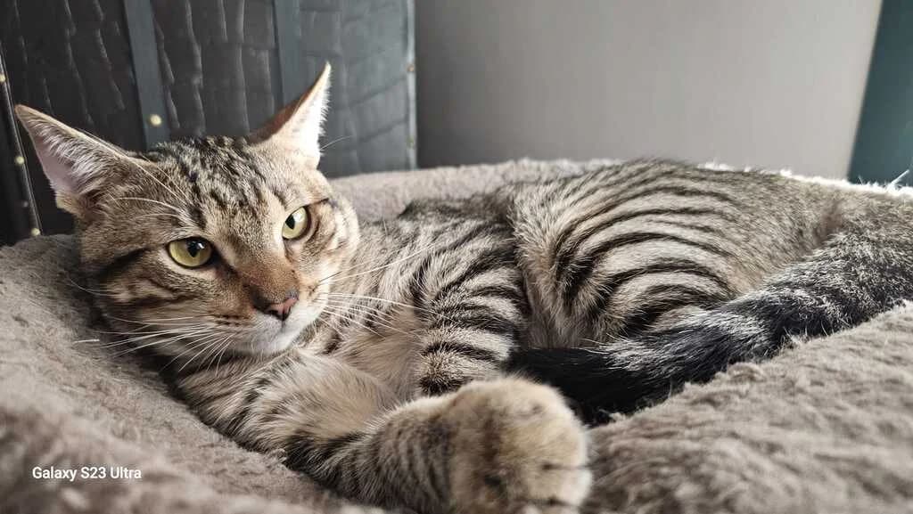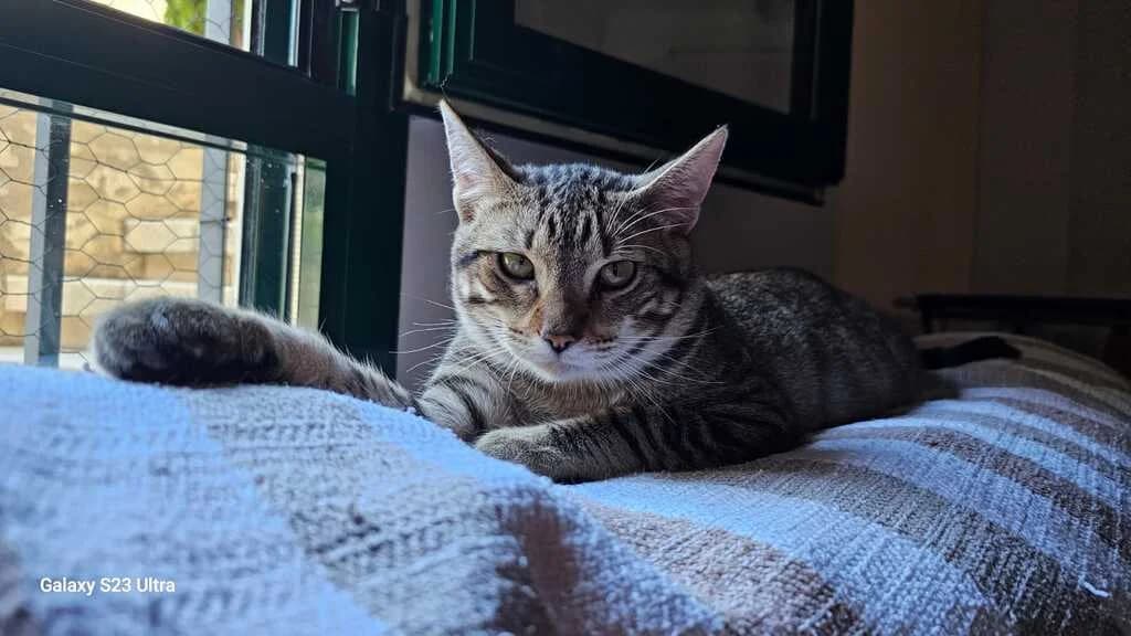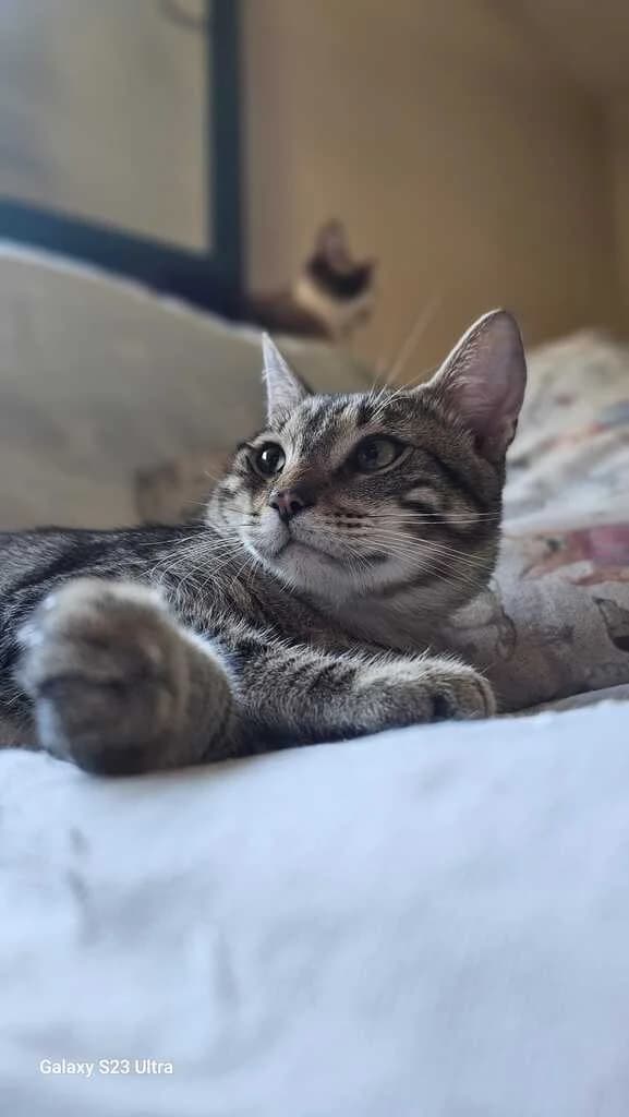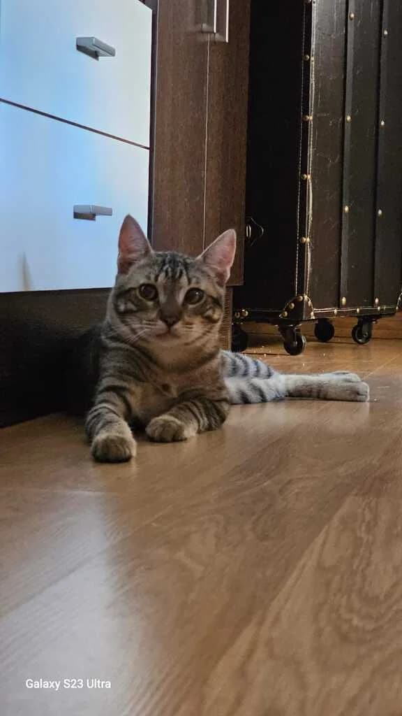 Tiene alrededor de 6 meses. Está acostumbrado a estar con más gatos, perros incluso pájaros. Le encanta tener juguetes y es muy cariñoso. Está sano.