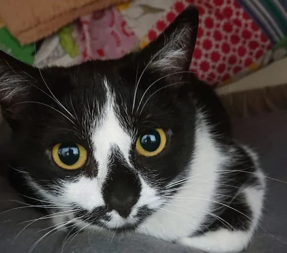 Black white cat, seven years old. Sterilized. Robust is skittish, not petted. At the shelter, she made great progress, no longer escapes from the human being, likes to observe the surroundings closely. He likes other cats. She needs a home that still taught her to trust a man.