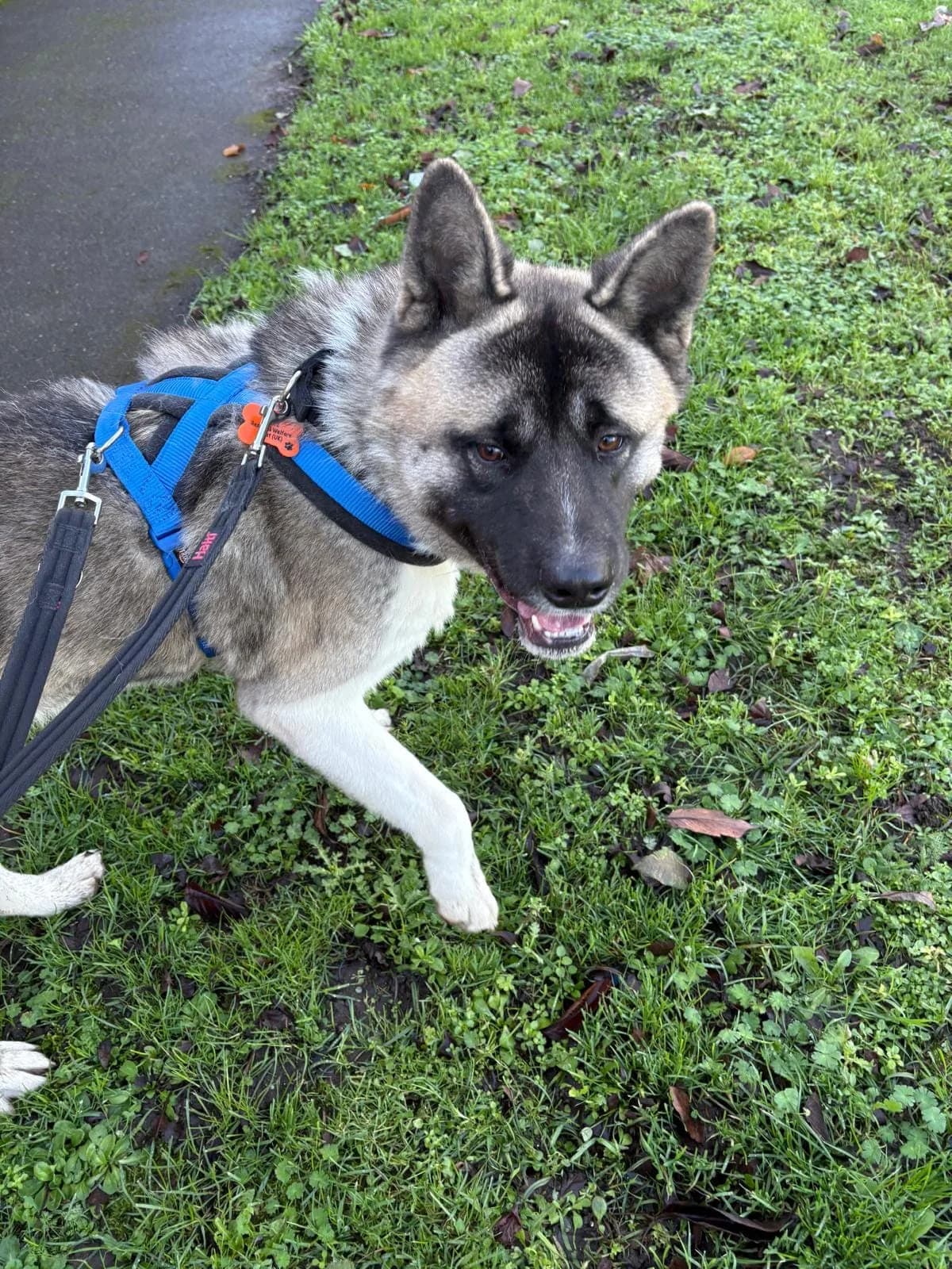 Meet Rocky – A Sweet Young Akita Ready for a Fresh Start Rocky’s journey hasn’t been the easiest. After finding himself alone and wandering around an industrial estate for several weeks, he was eventually brought to safety thanks to the persistence and kindness of local residents and professionals. Now in the care of ARW, Rocky is settling in, decompressing, and beginning to show the gentle, loving nature hidden beneath his initial worry. 18 month old Rocky is a handsome and sensitive young lad who is slowly building his confidence and showing more of his lovely personality each day. He loves his treats and takes them very gently, but he can be suspicious of being touched at first and isn’t yet comfortable with a collar or harness going over his head. He’ll need a calm, patient adopter who can help him understand that the world isn’t so scary and that people can be trusted. He would benefit from ongoing training, his “sit” is still a work in progress, but he’s eager to learn and with his love of tasty treats he will be easy to work with. He’s an inquisitive boy who loves exploring on his walks. He can be strong on the lead at first, but once the initial excitement passes, he settles nicely and takes in all the sights and smells around him. With consistent training and routine, he’ll continue to improve his manners Rocky shows interest in other dogs and isn’t reactive, though close contact has been limited due to his nervousness. He may enjoy calm canine walking companions to help boost his confidence. With slow, careful introductions, he could live with a friendly, spayed female dog of similar size. Like many Akitas (not all), Rocky has a strong prey drive, so no cats, small dogs, or small furries. Rocky’s Ideal Home Breed experienced owner Calm, patient home with gentle handling Dog-savvy children aged 12+ (due to his nervousness) Could live with a calm, spayed female dog of similar size. Someone committed to helping him grow in confidence and trust. Ready to Give Rocky the Future He Deserves? Rocky is a lovely boy who is slowly discovering that people can be kind, and the world doesn’t have to be overwhelming. With patience, structure, and love, he will blossom into a wonderful companion. If you can offer Rocky the supportive forever home he needs, we’d love to hear from you. Let’s help this gorgeous lad begin his new chapter. 🐾