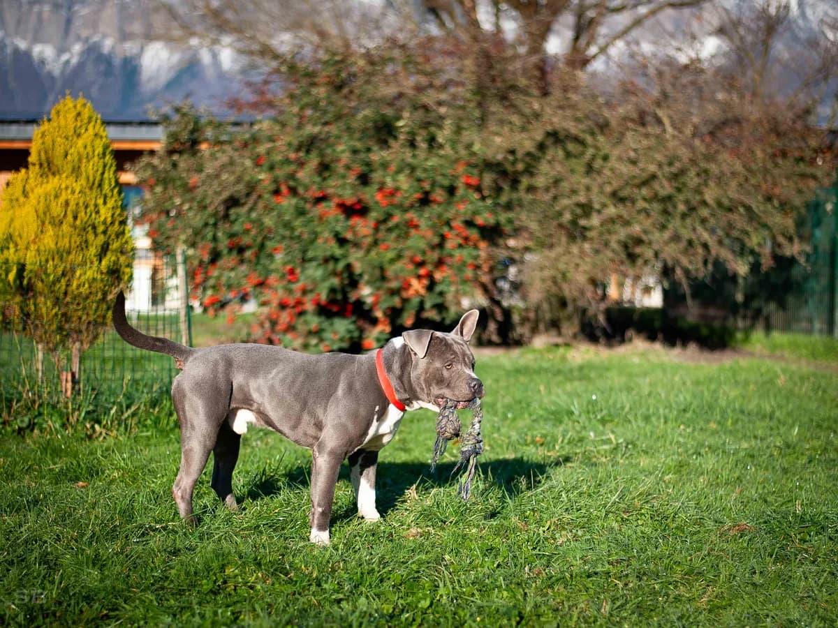 Ne vous laissez pas impressionner par mes muscles, observez plutôt mes qualités intérieures : adorable, cool, très affectueux avec les humains. Il est vrai que je peux être par moment un peu brusque, mais c'est simplement par manque d'éducation. J'apprécie les balades et ne tire pas particulièrement en laisse. Avec mes congénères, s'ils connaissent les codes canins, tout devrait bien se passer. Concernant les chats par contre, je n'aime malheureusement pas ces petites boules de poils. Pour que la vie soit encore plus douce, quelques cours d'éducation seraient les bienvenus. Avec ou sans, il est incontestable que si vous voulez un cœur qui bat à vos pieds, vous venez de le trouver.