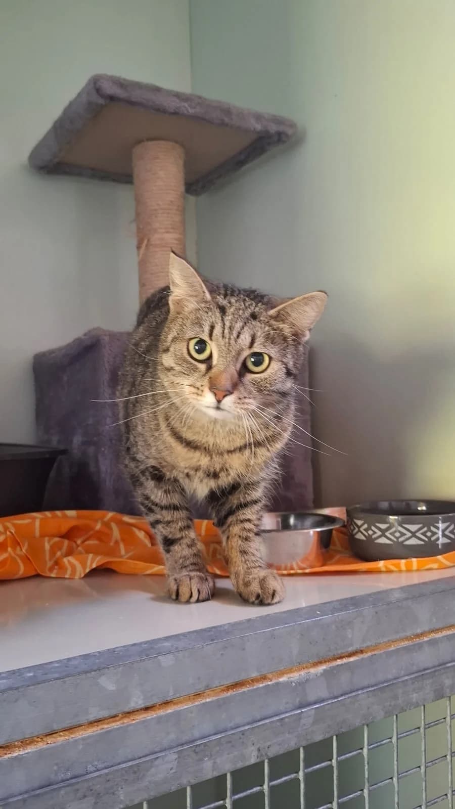 Selbstbewusste Tigerdame wartet auf ein tolles Zuhause. Die hübsche Katzendame Roxy kam als Fundkatze zu uns und wartet seitdem auf ein tolles Zuhause. Sie ist Menschen gegenüber super lieb und schmusig, sehr gerne knetet sie Decken, oder klettert auf den Schoß und schmiegt sich an einen. Sie ist also eine richtige Schmuserin. Roxy ist Freigängerin und soll im neuen Zuhause auch wieder die Gegend erkunden können. Für sie ist eher ein ruhiger Haushalt, ohne zu große Familie oder Kinder geeignet.