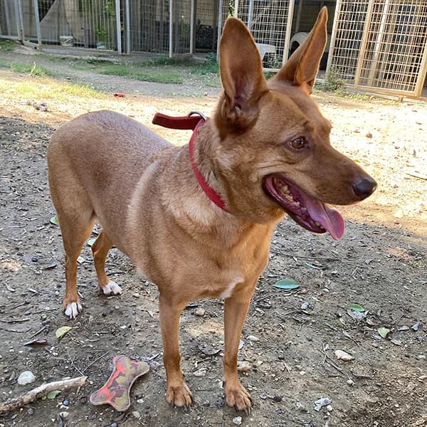 Roza lebt auf einer Pflegestelle in Patras / Griechenland.VIDEOS VORHANDEN !!! Hündin/kastriertgeb. ca. Januar 2022Grösse : ca. 46 cm Update 31.10.2024: Wer möchte eine lustige Fellnase als tolle Begleiterin fürs Leben ?? Update 31.10.2024:Unsere Kolleginnen berichten über Roza: Roza hat von ihrer guten Laune seit letztem Jahr nichts eingebüßt! Sie ist eine so witzige Hündin und immer mitten im Geschehen. Roza ist verträglich mit anderen Hunden und Katzen, sie liebt Menschen, hat ein einzigartiges Aussehen und würde für ganz viel Unterhaltung im neuen Zuhause sorgen. Selbstverständlich benötigt sie noch ein wenig Erziehung im Alltag und Menschen, die sich nicht von ihrem Charme um die Pfote wickeln lassen ;) Momentan hat sie ein wenig zu viel Gewicht, das würde sich aber bei regelmäßiger Bewegung ganz schnell ändern. Update 13.10.23Unsere Kolleginnen berichten über Roza: Roza ist einfach der Knaller! Sie ist so menschenbezogen und freundlich und dabei so unbedarft, dass sie immer mitten drin ist! Kaum hat man Platz auf einem Stuhl genommen, war Roza schon auf dem Schoss :) Mit ihren Fledermausohren ist sie auch noch ein absoluter Hingucker - sie ist einfach eine witzige, fröhliche Hündin, die bestimmt für jede Menge Spaß sorgen wird! Aber natürlich braucht sie Menschen, die ihr auch liebevoll Grenzen setzen können. WAS BISHER GESCHAH:Roza ist als Welpe in Patras vermittelt worden. Ihr Zuhause war nicht besonders schön, da sie ausschließlich im Garten lebte und ihre Menschen kein großes Interesse an ihr hatten. Vor Kurzem entdeckte eine örtliche Tierschützerin Roza in der Nähe ihres Grundstückes. Die Hündin hielt sich schon ein paar Tage dort auf und war in keinem guten Zustand. Die Tierschützerin brachte Roza wieder zurück. Dabei kam heraus, dass ihre Besitzer das Fehlen der Hündin noch nicht mal bemerkt haben - sie war dort nicht mehr gewollt.So wurde sie von der Tierschützerin zum Tierarzt gebracht, kastriert und geimpft. Auch ein Mittelmeertest wurde durchgeführt, der zum Glück in allen Bereichen negativ ausgefallen ist. Jetzt macht sich die Hübsche mit unserer Hilfe auf die Suche nach einer richtigen Familie.Roza ist eine Traumhündin, sie ist sehr schmusig und menschenbezogen, ihre Rute ist ununterbrochen in Bewegung. Ein aktives Zuhause wäre toll für sie. Sie ist eine junge Hündin, die noch so viel zu entdecken hat. Natürlich benötigt sie noch liebevolle Erziehung, damit sie zu einem tollen Familienhund werden kann. Bestimmt hätte sie auch Spaß am Besuch einer Hundeschule.Bei ihrer Einreise ist Roza bereits kastriert, geimpft, gechipt, entwurmt und bringt einen eigenen EU-Heimtierausweis mit.