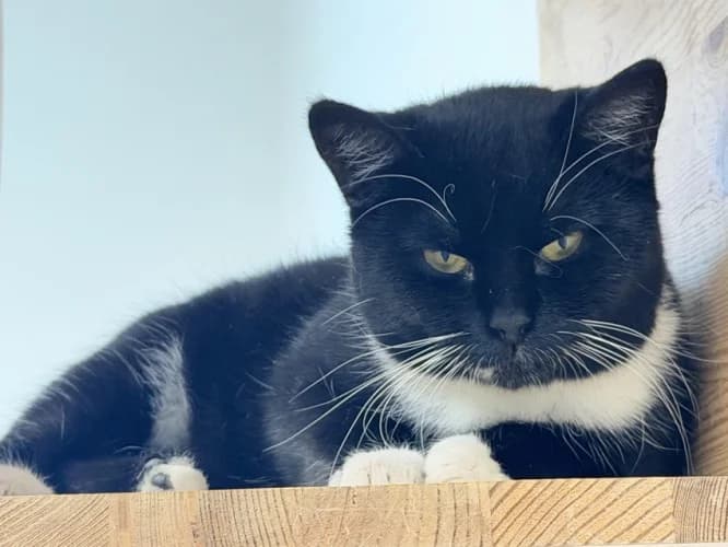 Czarna z białymi dodatkami kotka, ma rok, wysterylizowana. Rozalia jest płochliwym kotem, potrzebuje świadomego kociolubnego domu aby zadbał aby stała się miziakiem. Lubi inne koty.