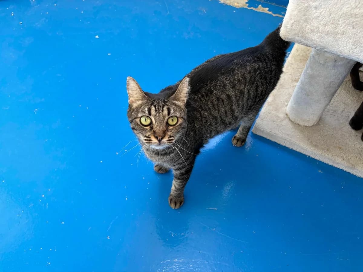 Rufi is a beautiful 5-year-old tabby cat rescued in La Campana, Nueva Andalucía. She is quiet, a bit shy, sweet and affectionate. She is double positive for AIDS and feline leukemia, which means she needs a home where peace, care and lots of love reign. More than any other cat, Rufi deserves the chance to feel safe and loved in a forever home. If you have a quiet space and a heart full of love, Rufi is waiting for you.