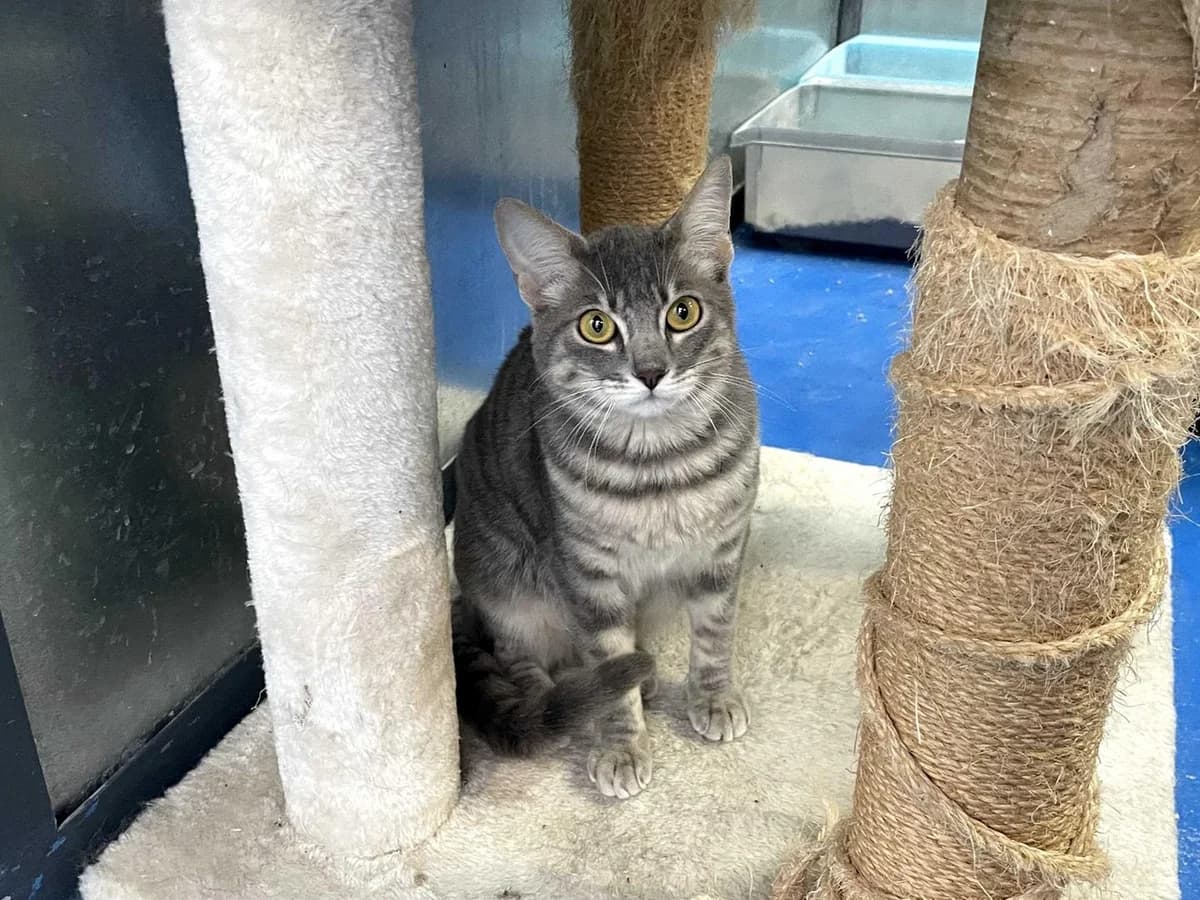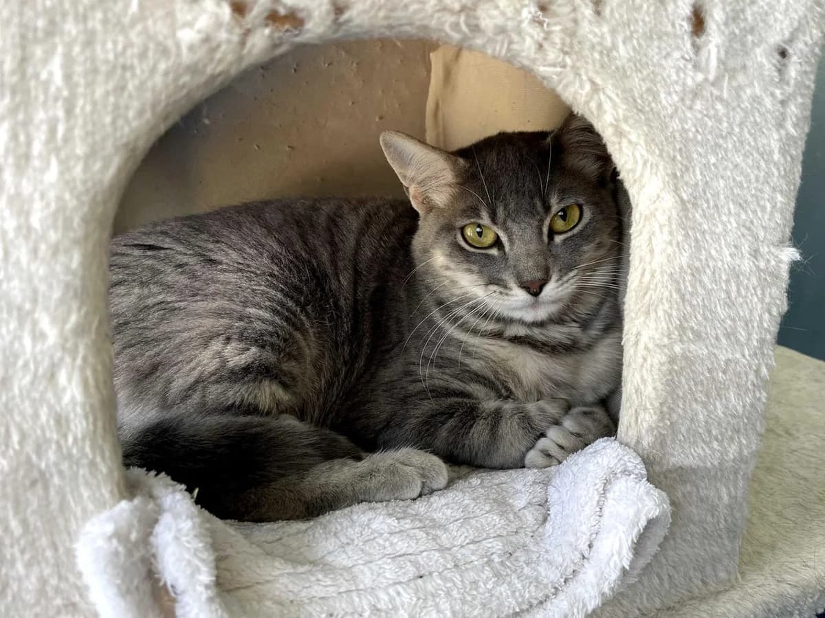 Samy is a beautiful grey tabby kitten, collected in mid-February when she was 7 months old. Since her arrival at the shelter, she is gradually adapting to her new environment. For now, she prefers to stay in her cradle, curiously observing everything that happens around her. She is a quiet cat. For the moment she lives with other cats in her room without any problems.