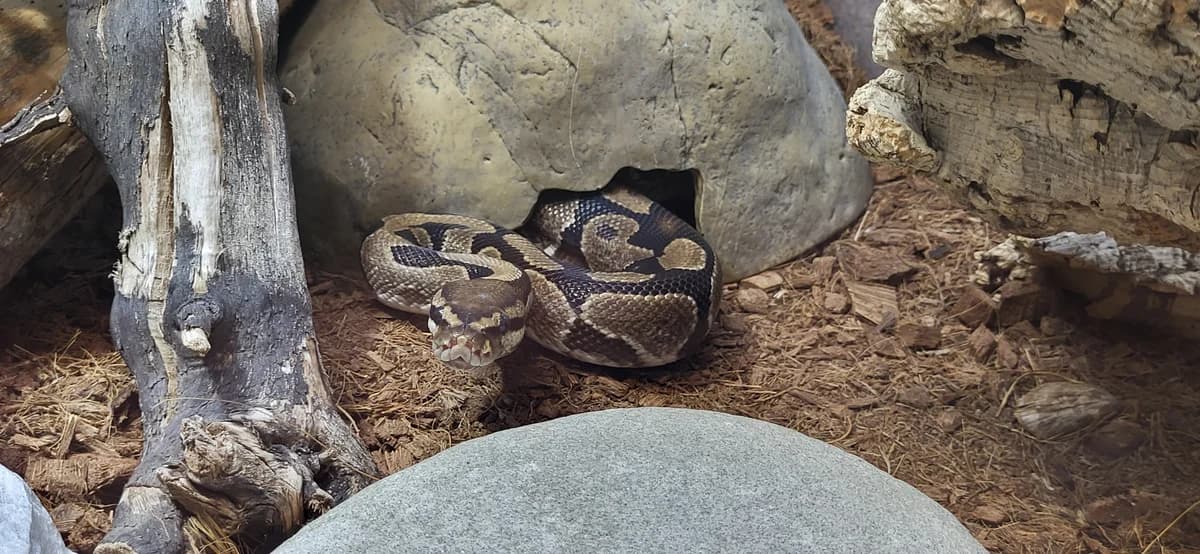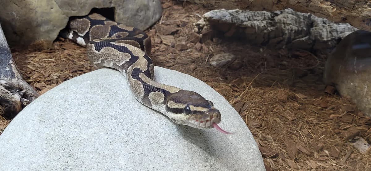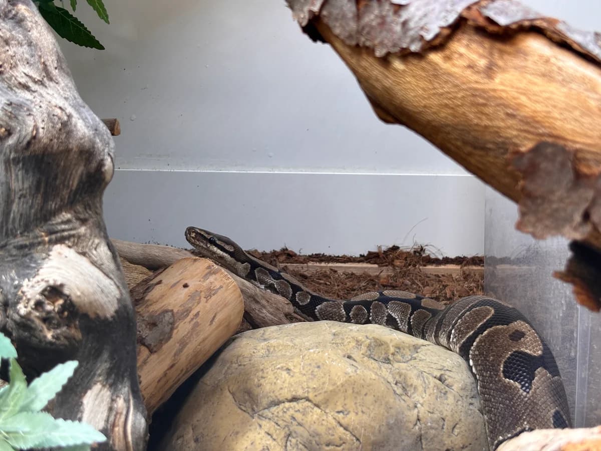 Die ältere Schlangendame Scarlett zeigt sich bei uns im Tierheim eher ruhig und zurückgezogen. Die meiste Zeit am Tag verbringt sie in ihren verschiedenen Höhlen. Wenn man im Zimmer ist, kommt sie ab und zu neugierig aus ihrem Versteck heraus und schaut, was man so treibt und ob es Futter gibt. Scarlett wünscht sich ein Terrarium in einem ruhigen Zimmer, in dem sie ihre restlichen Lebensabende verbringen darf.