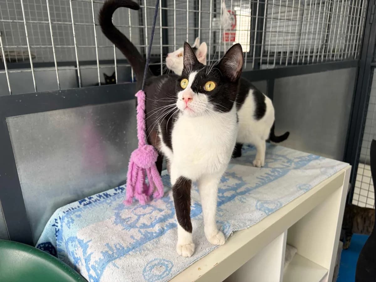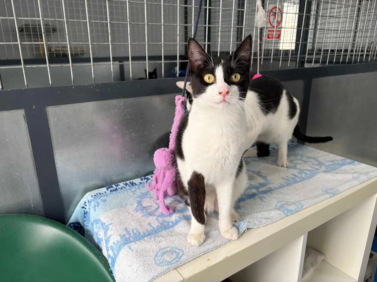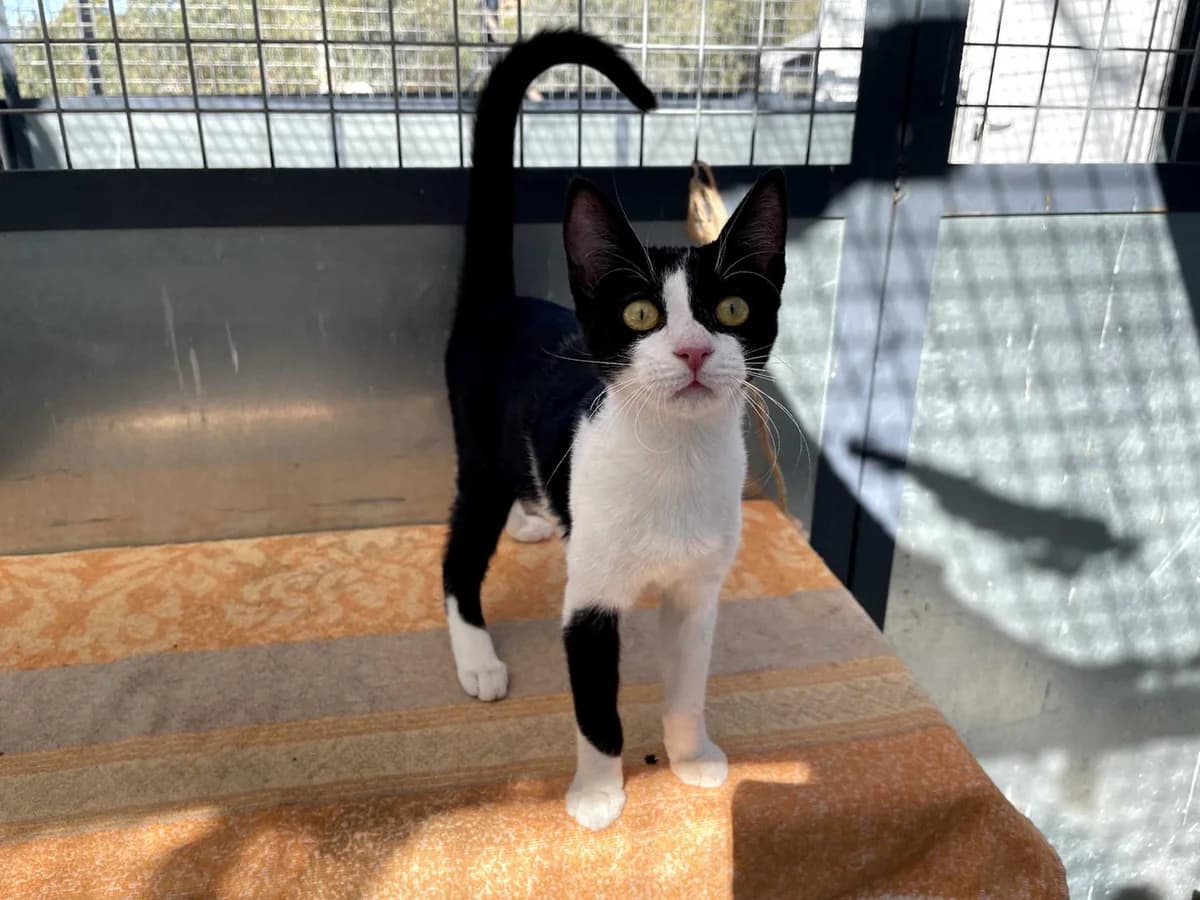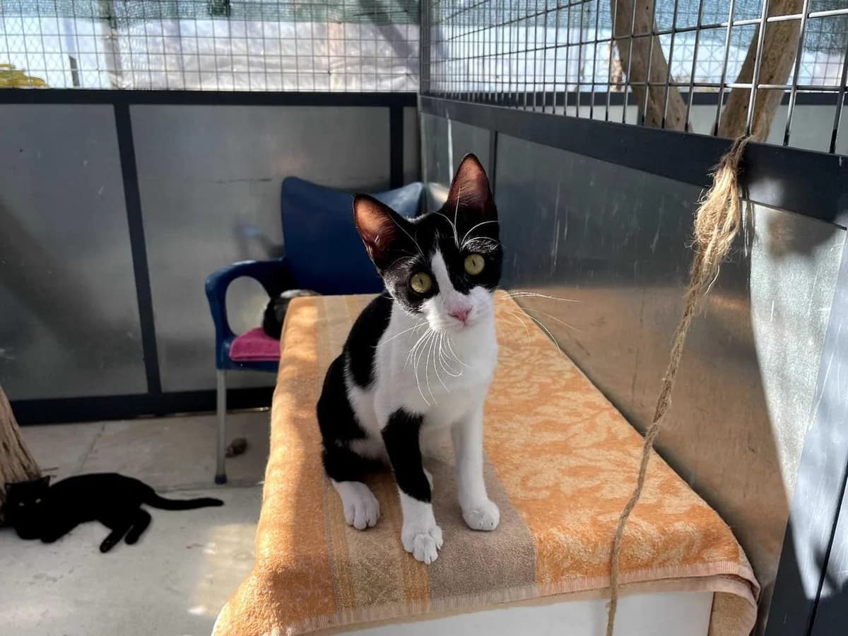 Shelly is a beautiful black and white kitten who arrived at the shelter at just two and a half months old. Found without a microchip in Nueva Andalucía along with Smokey. She is an affectionate cat who loves approaching people, seeking attention and cuddles. Active and playful, always ready to play. Gets along well with her roommates. Ready to find a loving family.