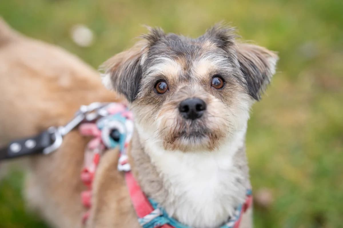 Deze knappe jongen is onze Sjonnie; een Norfolk Terrier van ruim 2,5 jaar oud (01-01-2023). Sjonnie is begin januari 2024 bij ons binnen gekomen als zwerver. Hierna heeft hij voor een jaar bij mensen gewoond, maar die hebben hem teruggebracht vanwege zijn gedrag. Sjonnie heeft meerdere keren gebeten richting de eigenaar en de broer van de eigenaar. Dit had te maken met voer wat van hem werd afgepakt. Hier in het asiel geven we Sjonnie het vertrouwen dat niemand aan zijn eten komt. We laten hem met rust als hij aan het eten is, zowel bij zijn eigen brokken als met een botje. Hoewel dat een leidraad zou zijn bij een nieuwe eigenaar, moet hieraan wel verder gewerkt worden. Een kennelsituatie is immers anders dan een thuissituatie. Wij zullen tijdens een kennismaking dieper op dit gedrag ingaan en uitleggen hoe dit moet worden aangepakt. Daarnaast kan Sjonnie op straat wel wat reactief zijn richting andere honden en vreemde mannen die zomaar op hem afkomen. We oefenen dit goed met hem, maar een nieuwe eigenaar zal hier verder mee aan de slag moeten. Hij reageert wisselend op honden. Hij vindt namelijk ook veel honden wel leuk maar niet allemaal. Hij moet hierin goed begeleid worden. Sjonnie is in zijn gedrag een echte terriër en gebruikt veelal zijn bekje. Dit is bijvoorbeeld met tuig aan doen en met aanlijnen. We leren hem hierin wat rustiger te worden, want het komt eigenlijk door zijn enthousiasme. Bij de dierenarts en trimmer doen we een snuitje aan omdat hij het op een gegeven moment niet meer leuk vindt en dus kan reageren. Bij de vorige eigenaren was hij bang voor vuurwerk. Toen Sjonnie de eerste keer bij ons binnen kwam, had hij zijn achterpoot gebroken. Hij mocht hiervan herstellen in een pleeggezin voordat hij een nieuw huisje zocht. Wel hebben we bij terugkomst gemerkt dat hij het pootje nog wel ontziet. Hij krijgt hier op dit moment hydrotherapie (fysiotherapie) voor om te leren zijn pootje weer beter te gebruiken. Bij een controlefoto is ook gebleken d