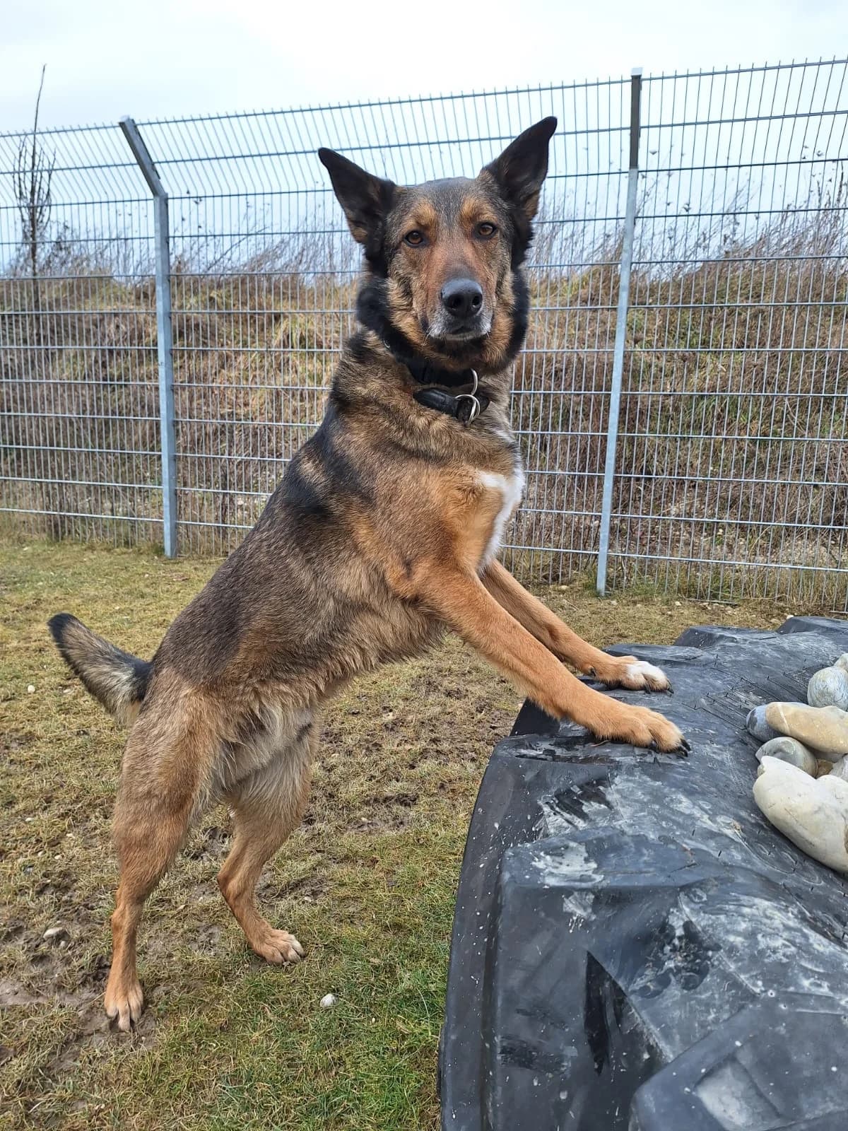 Spiky, ein Rasse Mix, der es in sich hat. Der junge Rüde musste leider sein Zuhause verlassen, da man ihn nicht mehr ausreichend auslasten und erziehen konnte. Spiky ist nun bereits seit er 7 Monate alt war bei uns. Sein anfängliches Jagdverhalten kann nun gut kontrolliert werden, aber ist natürlich noch vorhanden. Bei seinen Bezugspersonen ist er sehr verschmust, lässt sich auch korrigieren und gut führen, Fremden gegenüber ist er sehr argwöhnisch und muss mit einem guten Management gearbeitet werden. Außerdem hat er, malitypisch, eine sehr niedrige Reizschwelle und dreht gerne mal auf und testet auch aus, wie weit er gehen kann. Der tolle Rüde kennt viele Grundkommandos und liebt es mit seinen Menschen zu arbeiten. Der Besuch einer Hundeschule ist daher auch sehr wichtig und sinnvoll, wobei Einzeltraining zu bevorzugen ist. Spiky wäre ein toller Begleiter für Menschen mit Hunde-und Rasseerfahrung, die gerne mit ihm arbeiten möchten. Hundesport, Rally Obedience, auch eine BH- Prüfung wäre mit ihm möglich. Auch Nasenarbeit liegt dem tollen Rüden und ist mit Spaß bei der Arbeit. Spiky ist eine Aufgabe und kein leichtführiger Hund, aber in den richtigen Händen ein toller Kamerad. Er ist grundsätzlich verträglich mit Artgenossen, natürlich entscheidet immer die Sympathie. Bei uns kommt er mit verschiedenen Hündinnen gut klar, aber auch der ein, oder andere Rüde war schon ein Spielgefährte für ihn. Der schöne Rüde benötigt ein Zuhause mit Erfahrung, Zeit und Liebe. Spiky trägt beim Spazierengehen und beim Training immer Maulkorb, er hat damit keinerlei Problem und ist auch in einem Zuhause ein wichtiges Accessoire. Kinder und andere Haustiere sollten nicht im neuen Zuhause leben. Eine souveräne Hündin dagegen könnte für Spiky eine Bereicherung sein.