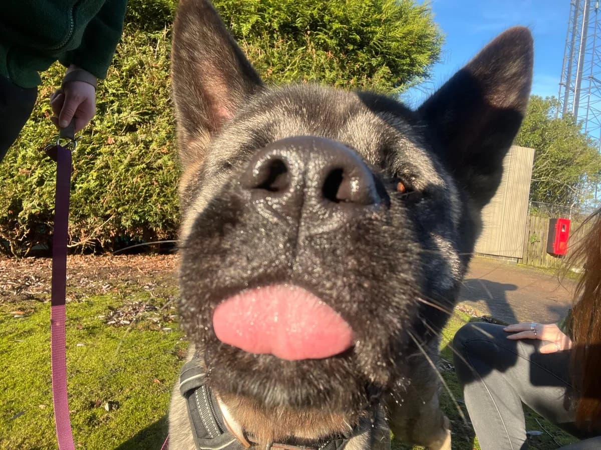 We are advertising this lovely lady on behalf of another rescue to help find her the perfect home. Star is almost two years old and truly lives up to her name. She’s a wonderful girl with a big heart and an even bigger love for people. Star originally came to rescue as a stray with some medical issues that were clearly affecting her comfort. She had severe entropion which was impacting her vision, along with an umbilical hernia. Both conditions have now been successfully treated and the difference in Star has been incredible. Since her surgery she has blossomed into a confident, happy dog who is enjoying life to the full. Now that she’s feeling better, Star absolutely loves getting out and about. She travels well in the car and has joined staff on trips into towns and cafés where she happily watched the world go by. She has even attended a motocross event where she confidently greeted lots of people and soaked up all the attention. She would suit someone active who would love a dog to accompany them on walks, outings and everyday adventures. People are definitely Star’s favourite thing. She adores fuss, cuddles and affection, often leaning her big squishy self into you for more. She can be enthusiastic when greeting and sometimes gets a little bouncy with excitement, but this is simply her joyful personality shining through. She is already responding well to guidance as we work on calmer, more polite greetings. Star is very food motivated and enjoys training, which makes her a great candidate for continued learning in her new home. She clearly enjoys having something to do and loves engaging with her people. Toys are another favourite of hers and she’s often proudly carrying one around. She’s also very talented at de-stuffing them, so future adopters may want to keep a sewing kit handy! Around other dogs, Star shows interest and is generally social, although she can become overexcited in busier situations. We are helping her develop calmer walking skills, and while she could have suitable dog friends out on walks, we feel she would be happiest as the only dog in the home for now. Because Star arrived as a stray, we don’t believe she has had much experience living in a typical home environment. She will benefit from patient introductions to household life and clear, consistent boundaries as she learns the rules. Things like sofa cushions may look suspiciously like toys at first, but with gentle guidance she will soon learn. Star will need a home without cats or small animals. Due to her size and bouncy enthusiasm, we feel she would be best suited to homes with older, dog-savvy children aged eight and over who will understand her excitable nature. Star is a big, loving sweetheart who simply wants to be close to her people and share in whatever they are doing. If you’re looking for an affectionate, fun companion who will happily join you on adventures and then settle down for cuddles afterwards, Star could be the perfect addition to your family.