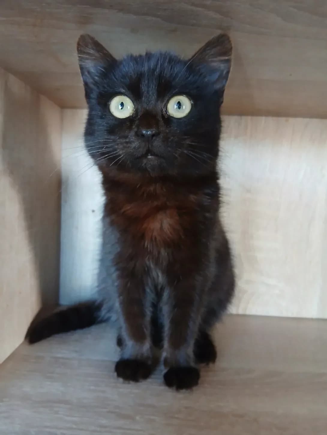 A little girl found by a sapper group in a landing. Raised, knows the litter box, treated, waiting for her first vaccine.