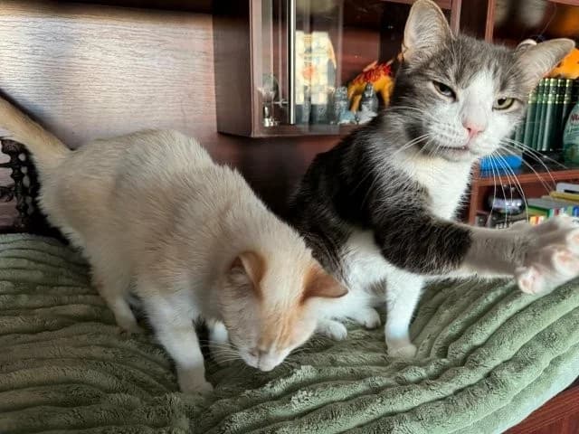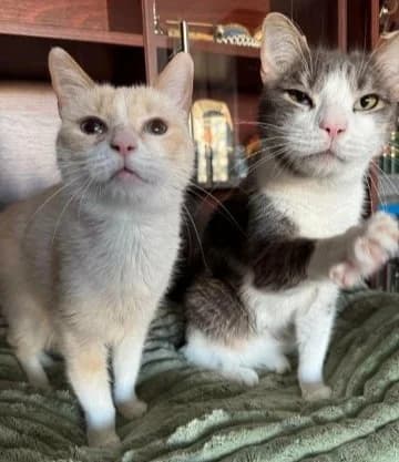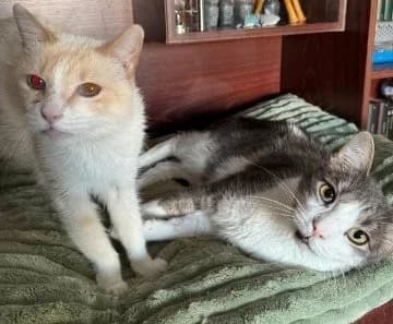 Tezy (männlich, weiß-grau getigert), Blue (weiblich, weiß-pfirsichfarben), geb. ca. 2019, kastriert, geimpft, entwurmt, gechipt, EU-Heimtierpass, vor Ausreise Test auf FIV und FeLV Über Tezy & Blue – ein liebenswertes SchmusekatzenpärchenTezy & Blue, dieses entzückende Geschwisterpaar, wurde auf einem Feld vor den Toren Bukarests gefunden. Ganz offensichtlich hatte sich da jemand seiner Katzen entledigt … und vielleicht durch Katzenbabys ersetzt … Tezy & Blue hatten großes Glück, dass jemand sie fand und sich ihrer erbarmte. Sie leben nun bis zu ihrer