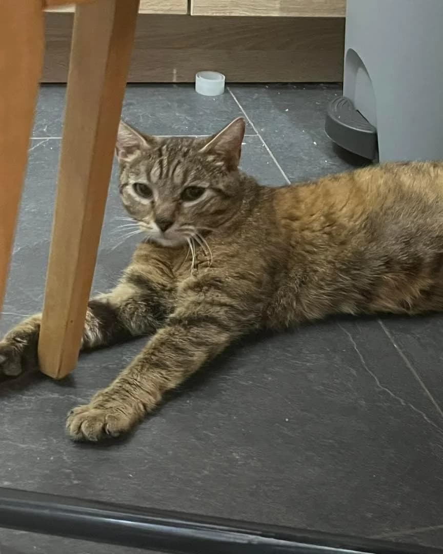 Tia, femelle tigrée de 1 an Maman de Via et Vitaa À peine sortie de son rôle de maman, Tia est encore un peu timide, mais s’habituera vite dans sa nouvelle famille. Elle aime les câlins, mais ne viendra pas encore en réclamer. Ok chats et enfants calmes, entente chien inconnue Identifiée, Stérilisée, vaccinée, déparasitée, négative fiv/felv Frais d’adoption de 180€