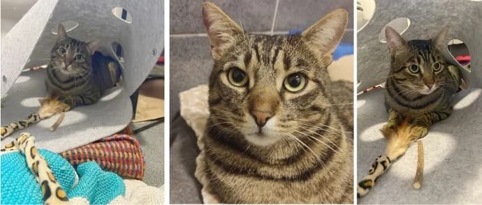Generalità: Bellissimo giovane micio, di quelli che vengono definiti “comune europeo”. Tuttavia, nonostante il classico mantello tigrato color nocciola e gli occhi giallo-verdi dallo sguardo intenso, questa definizione non rende pienamente giustizia al suo fascino felino. Tigro è vaccinato, microchippato e testato FIV/FeLV negativo. Gode di buona salute; è un gran mangione, ma segue una dieta specifica per gatti con intestino sensibile. Carattere: Tigro è un micio vivace, incredibilmente sveglio e intraprendente, con un forte bisogno di affetto e sicurezza. Inizialmente può mostrarsi timido con chi non conosce, ma si apre rapidamente quando riceve cibo e inizia a prendere confidenza con la persona. Adora giocare ed esplorare e ama particolarmente il suo tunnel. Attualmente è ospitato provvisoriamente in un bagnetto, dove purtroppo non ci sono grandi spazi per il gioco e l’esplorazione; nonostante questa situazione sicuramente stressante, Tigro sta dimostrando ottime capacità di adattamento ed è un gatto estremamente equilibrato. Dopo il trauma dell’abbandono, grazie al lavoro delle volontarie sta gradualmente riacquistando fiducia nell’essere umano. Adozione ideale: Per Tigro, gatto intelligente e vivace, curioso ed esploratore, si cerca un’adozione in appartamento, in un contesto sicuro e ricco di stimoli. L’ideale sarebbe una famiglia con tempo, disponibilità e pazienza da dedicargli, capace di offrirgli attenzioni, gioco e affetto, comprendendo sia la sua grande intelligenza sia il suo profondo bisogno d’amore. Si richiede un contesto tranquillo (meglio senza bambini) e senza altri gatti, in quanto in colonia ha dimostrato di non gradire la presenza dei suoi simili. NO GIARDINO. Balconi e finestre dovranno essere messi in sicurezza (da valutare). Sono previsti colloqui pre e post affido. Provenienza: La sua prima apparizione in una colonia felina seguita dai volontari a Mezzago (MB) risale a settembre 2022. Fin da subito Tigro si è dimostrato un gatto ben soci
