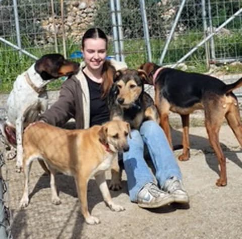 Tim, gecastreerde reu, 3 jaar, geboren omstreeks augustus 2023, 60 cm hoog, weegt ca. 22 kg, buitenland. Achtergrond. Deze vrolijke jonge hond van 3 jaar is gedumpt bij de shelter. Hij liep op een dag op het terrein en wilde niet meer weg. Karakter. Tim is een vrolijke, levenslustige, vriendelijke, aanhankelijke, ondeugende en erg slimme hond. Het is te merken dat hij is opgegroeid met andere honden én tussen de mensen. Hij vindt het geweldig om met de andere honden in de shelter te spelen, maar vindt het ook heel fijn als hij in huis mag. Knuffelen, spelen en op de bank liggen zijn zijn favoriete bezigheden. Tim is een mooie, ranke hond die wel zijn energie kwijt moet kunnen. Dit kan zijn tijdens lange wandelingen of tijdens het spelen met andere honden. Waarschijnlijk vindt hij het ook erg leuk om naast de fiets te rennen. Mee in de auto vindt hij ook geweldig! Tim kent de basiscommando’s, luistert erg goed en loopt netjes aan de lijn. Kinderen en honden vindt hij ontzettend leuk. Hij kan aan katten wennen, maar daar moet hij wel in begeleid worden.
