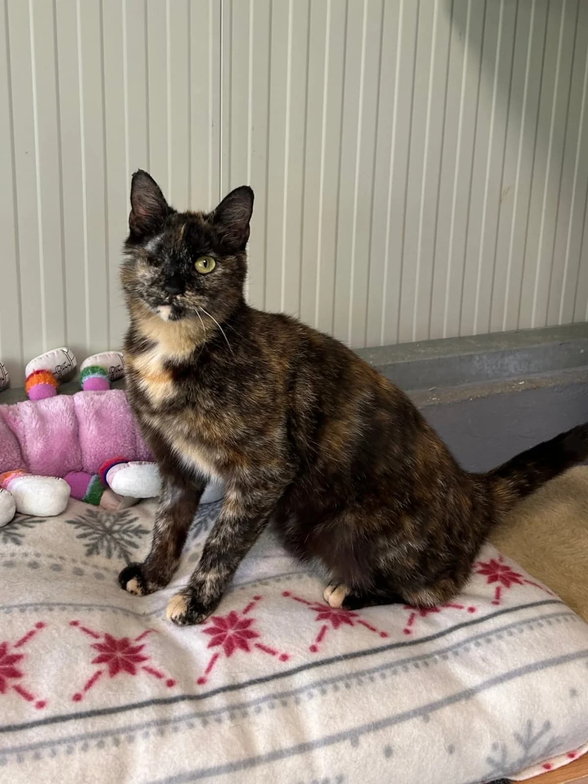 Tofi je mlajša samička, stara približno 9 mesecev. Po značaju je izjemno nežna in mirna, hvaležna za čisto vsak obrok, po katerem se z veseljem še dolgo carta. Ob sprejemu v naše zavetišče je kmalu prestala operacijo, pri kateri so ji, zaradi hude poškodbe, odstranili desno učko. Kljub temu Tofi živi povsem normalno življenje, njena posebnost pa je prav nič ne ovira. Zanjo vseeno priporočamo predvsem notranje bivanje, kjer bo dovolj varna in bo lahko brezskrbno uživala vsakdan. Za vse dodatne informacije o posvojitvi nas lahko pokličete na 05 66 33 766 ali nam pišete na . Donacije S podporo in donacijami omogočamo živalim dostojno življenje. Sprejemamo denarne donacije, opremo in hrano. Preberi več Prostovoljno delo Veselimo se prostovoljcev, ki so pripravljeni pomagati in nameniti delček svojega časa v korist živali. Vsaka žival v našem zavetišču je deležna najboljše oskrbe, skrbimo zanje, spremljamo njihov napredek. Preberi več Sprehajanje Sprehajanje psov v našem zavetišču ni le vodenje na vrvici, temveč tudi popestritev, fizična aktivnost, socializacija in pristen stik s človekom. Preberi več Izlov in prevoz Prostoživečim mačkam zagotovimo oskrbo in sterilizacijo/kastracijo ter jih vrnemo v okolje. Manj pripravljene mačke začasno oskrbimo v zavetišču in iščemo nov dom. Preberi več