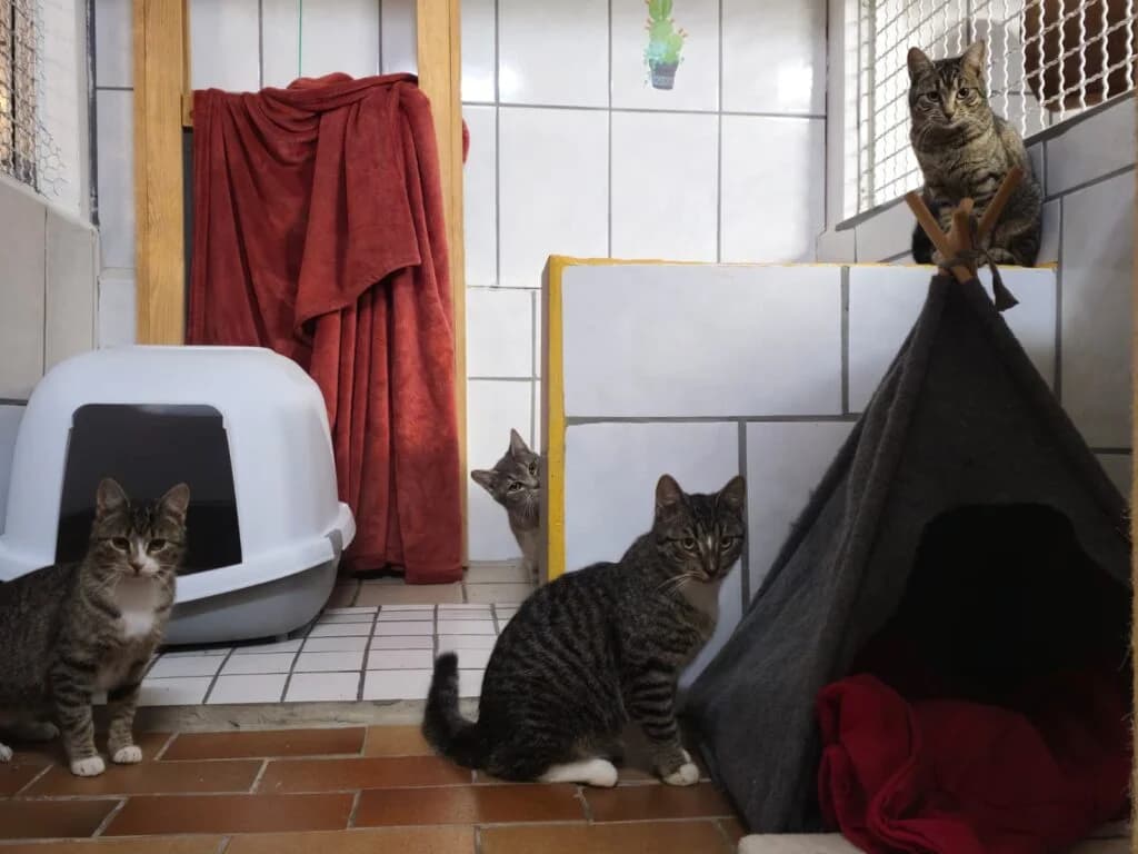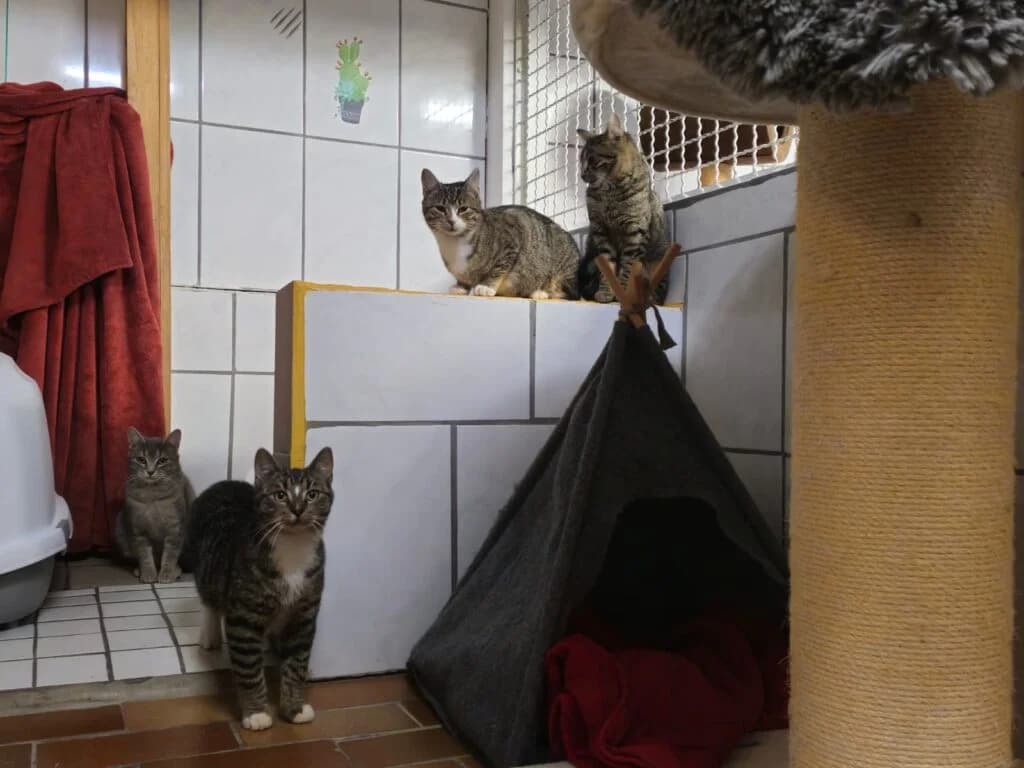 Diese 6 Katzen kamen als 'halbverwilderte' Katzen aus Schwarme zu uns. Dort wurden sie von einer älteren Dame versorgt, die sich dann nicht weiter um die Tiere kümmern konnte. Leider waren alle 6 von Beginn an wirklich extrem scheu und wir haben sie fast gar nicht zu Gesicht bekommen. Inzwischen haben sie sich einigermaßen an das Zusammenleben mit uns Menschen gewöhnt und bleiben schonmal interessiert sitzen wenn man mit dem Besen vorbeikommt oder das Frühstück bringt. Kater Filou lässt sich inzwischen sogar streicheln. Für ihn wünschen wir uns auf jeden Fall ein Zuhause in dem er als Familienmitglied, mit Freigang, im Haus zusammenleben darf. Er ist sehr sozialverträglich und bestimmt die perfekte Gesellschaft für eine bereits vorhandene, freundliche Katze. Für seinen Bruder und seine 4 Schwestern würden wir uns natürlich auch ein Zuhause wünschen in dem sie sich ganz in Ruhe an das Leben im Haus, mit Menschen, gewöhnen können. Erfahrungsgemäß können nämlich auch diese Katzen zu richtigen Schmusern werden, die, hat man einmal ihr Vertrauen gewonnen, oft eine besonders innige Bindung zu ihren Bezugspersonen haben. Leider kommen die 5 mit dem Tierheimalltag nur sehr schlecht zurecht und sie leiden sehr unter dem Eingesperrtsein. Wir könnten uns daher auch vorstellen die Katzen in ein Zuhause zu vermitteln in dem sie nicht mit im Haus, sondern draußen leben. Dann sollte ihnen natürlich ein Gartenhaus, ein Stall o.ä. zur Verfügung stehen. Im Winter brauchen sie natürlich einen isolierten, warmen und kuscheligen Schlafplatz. Medizinische Versorgung und die tägliche Fütterung verstehen sich natürlich von selbst. Und besonders prima wäre wenn sie jeweils mit einem Geschwistertier zusammenbleiben könnten.