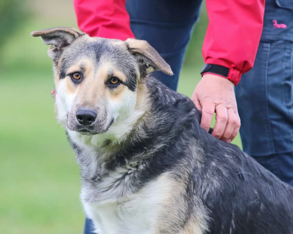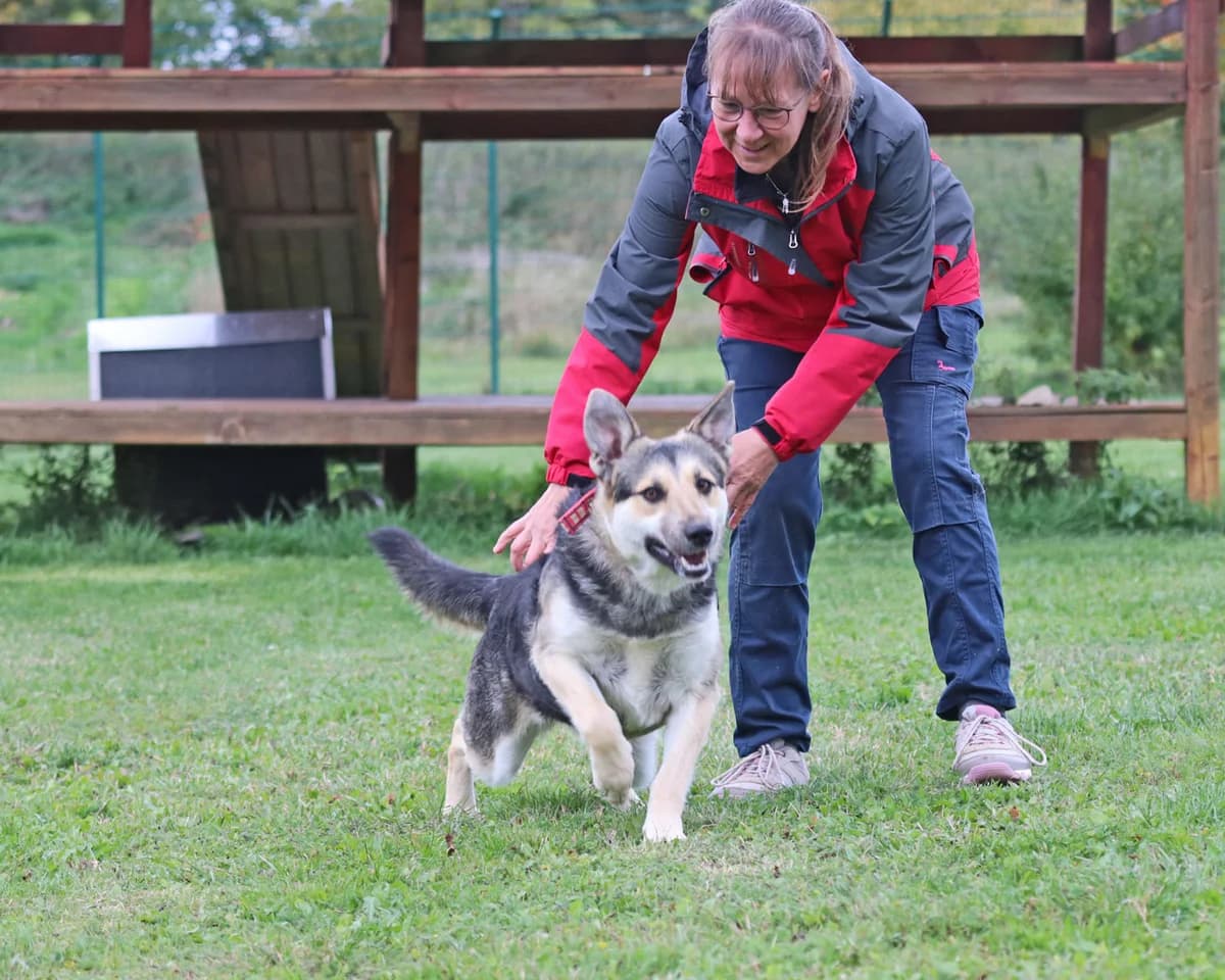 Roxy, charmante Hündin, geb. 2024, Schulterhöhe ca. 45 cm Roxy ist nicht nur eine äußerst bezaubernde, hübsche Hundedame. Roxy ist auch sehr intelligent und lernt schnell. Sie ist interessiert an den Menschen, nimmt Signale wahr und setzt diese blitzgescheit um. Mit Roxy draußen zu sein, macht mega Spaß. Sie ist sportlich unterwegs und immer ein bissel in Aktion. Aber natürlich gibt es auch bei Roxy die ruhigen, verschmusten Momente. Dann kommt sie ganz nah heran, verteilt gerne Küsschen und genießt es, wenn man ihr weiches Fell steichelt. Mit ihresgleichen ist Roxy verträglich. Wenn die Symphatie zwischen den Tieren stimmt, wäre Roxy auch als Zeithund möglich, ansonsten gerne Einzelprinzessin. Katzen hat Roxy bisher nicht kennengelernt. Ein Haus mit Garten, interessante Spaziergänge gespickt mit kleinen Aufgaben und später vielleicht der Besuch einer Hundeschule, dass alles wünschen wir uns für Roxy. Kinder im Haushalt sind kein Problem, jedoch sollten sie recht standfest sein, um bei liebgemeinten aber manchmal sehr stürmischen Begrüßungen von Roxy, nicht sofort hinzufallen. Möchten Sie unsere charmante Roxy persönlich kennenlernen? Dann vereinbaren Sie gerne einen Termin unter . Bitte beachten Sie auch unsere >>> „Selbstauskunft zum Tierabgabevertrag“ . Bringen Sie diese ausgefüllt gerne bei Ihrem ersten Besuch bei uns mit. Vielen Dank. Spielen macht glücklich >>> Video Unsere bezaubernde Roxy im >>> Video Lieben Dank an Beatrix S., die eine Patenschaft für unsere Roxy übernommen hat. Der Hund ist ein Begleiter, der uns daran erinnert, jeden Augenblick zu genießen.