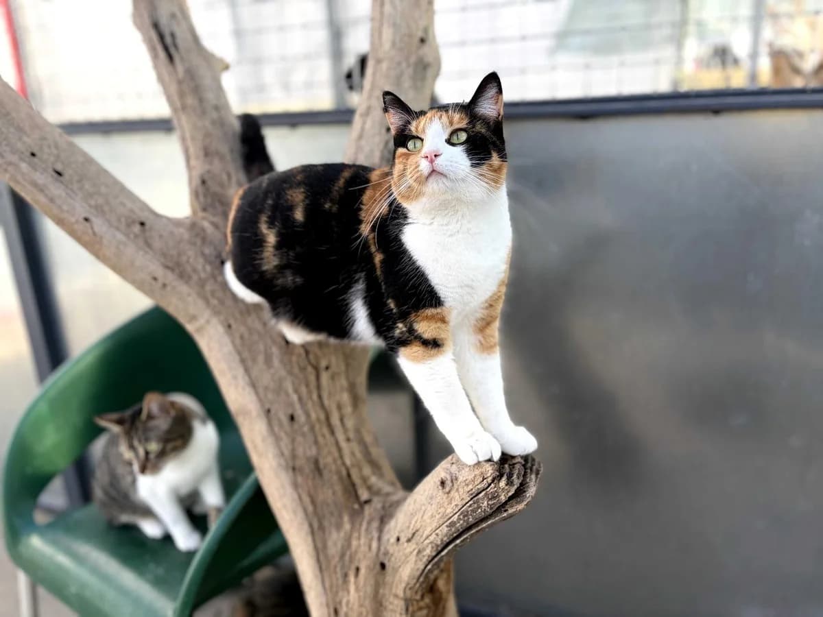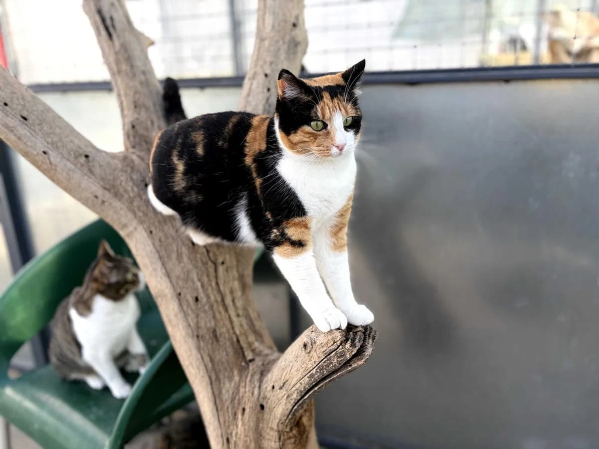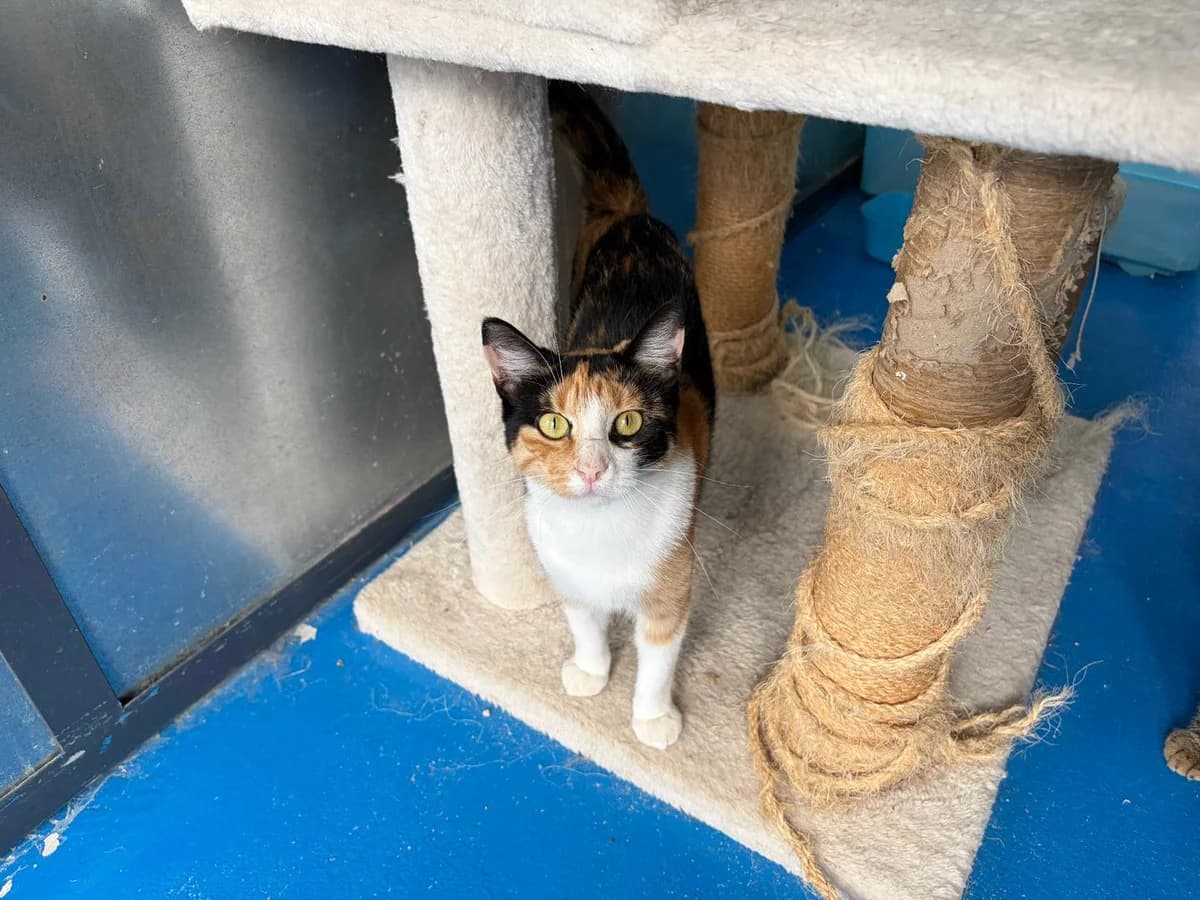 Violeta is a beautiful tricolour cat, striking for her beauty and her gorgeous green eyes. She was rescued on 1 August 2025 and has been part of the Triple A family ever since. She is affectionate with people, likes to be petted and enjoys human contact, especially when she is in a quiet environment. She also has a curious and playful nature; one of her favourite places is to climb up the scratching post to observe everything that is going on around her from above. Violeta currently lives harmoniously with other cats and is sociable and respectful in her interactions with them. Violeta is looking for a stable and loving home where she can continue to develop peacefully and share her affection with a family who will love her forever. 💛 Would you like to give this beautiful tricolour cat a home? 📩 Contact us about adoptions: 📸 Follow us on Instagram:
