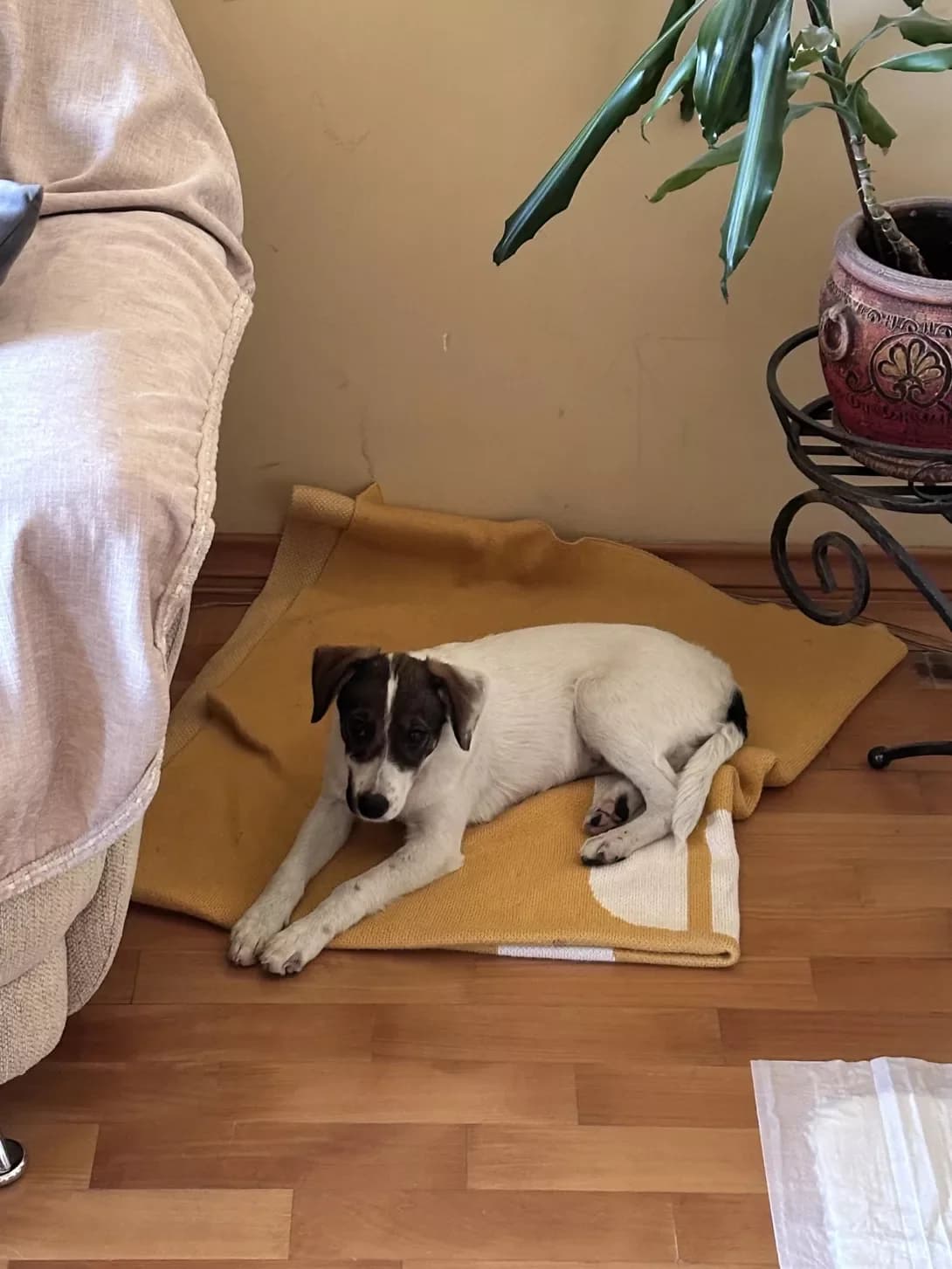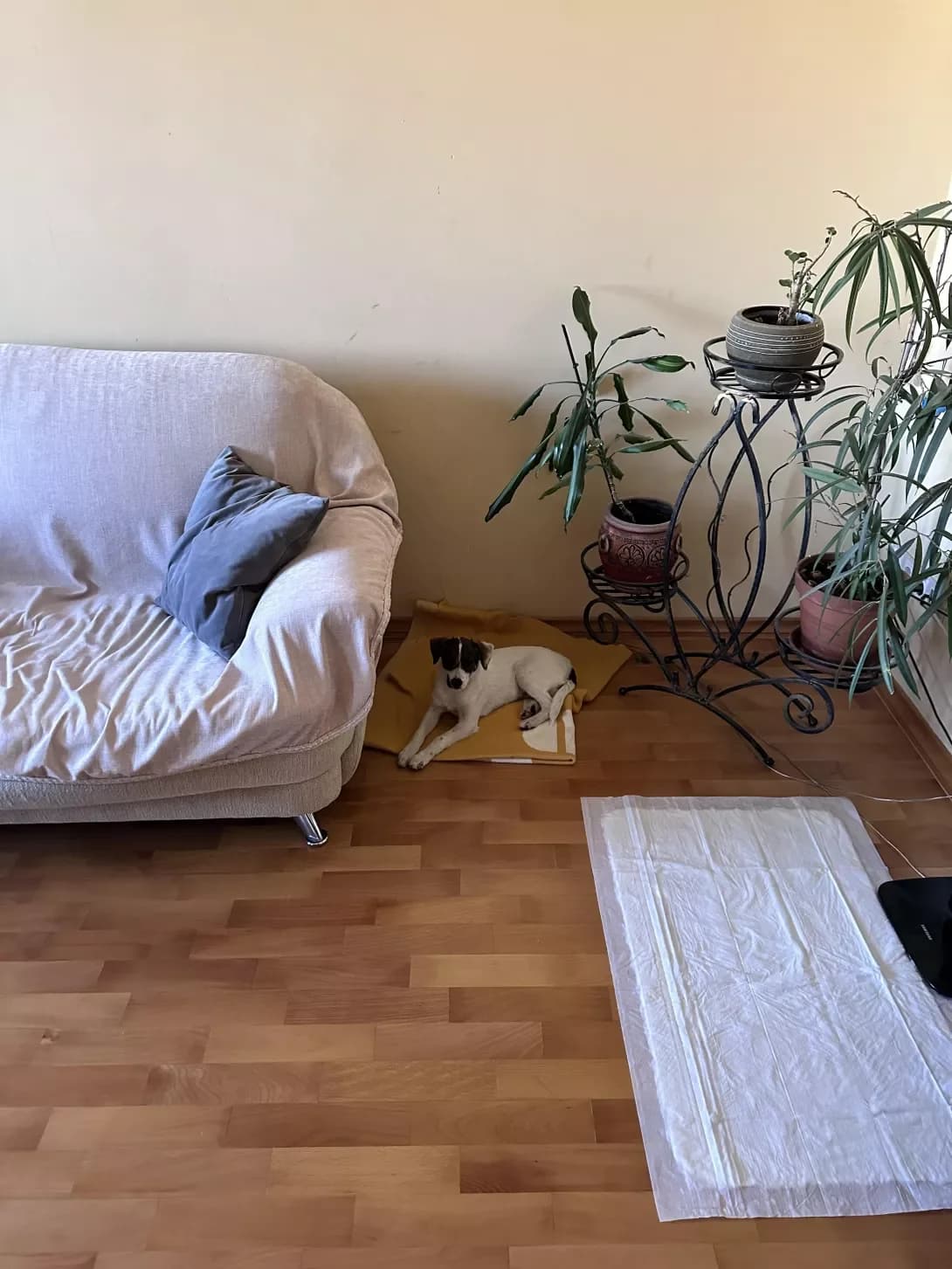 🐾 Help find a home for a little dog! I came to Uzhhorod to see my mother and heard from the neighbors that a dog had been barking nonstop on the fifth floor for several days. It turned out that she was kept locked up on the balcony without food or care. The puppy was so desperate that it seemed like it was about to fall off… 💔 I called the police twice, but there was no result. In the end, I managed to take the puppy away from that woman. When I took the little one, she was exhausted, cold, and trembling with fear. We bathed her, fed her, and took her to the vet. Despite everything, she immediately began to show trust in people 😭❤️ The girl is about 3–5 months old. Very gentle and kind. She already has a passport, her first vaccine. There are no abnormalities, she is healthy. I would keep her, but we live abroad and already have a dog from a shelter, so we can't take another one. I would be very grateful if you could help find a loving family for her 🙏 The little one deserves care and a real home 🐶