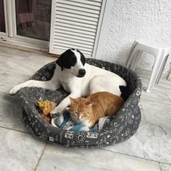 One year old Nayla is one of the sweetest, most beautiful dogs we have ever met. Perfect for a young family, Nayla is currently being fostered in Yorkshire and ready to meet. Originally a street dog from Greece, Nayla was run over by a car as a puppy and has a leg injury that was never properly treated. She will always walk with a little limp but is otherwise healthy, funny, energetic and beautifully kind. Nayla loves people, children, dogs and especially cats! In Greece she formed a playful bond with a ginger stray and she still thinks that every cat she meets wants to be her best friend. Nalya is loving an active life in her foster home . Due to her old injury, she is an 'energetic play in the garden and walk in the park rather than a 5 mile hike' kinda girl. But we challenge anyone to keep up with her amazing zest for life, as her video shows! Chris our fosterer says “ Nayla is my little ray of sunshine. If you need any information about her I will be totally honest, she really is a delightful pup, she walks beautifully on the lead, she knows how to sit, wait and the word no she loves children, she's calm around the cats and , she has no food aggression. She loves to play, can be left and is not destructive! She loves anything pretty with soft fur - just like herself!'